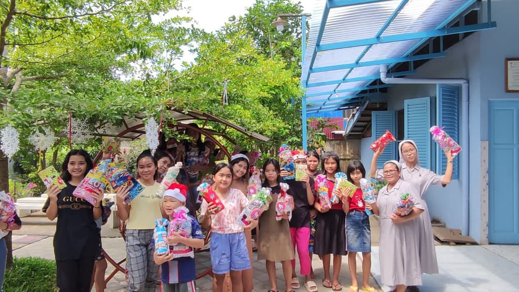 Kegiatan ini dilakukan bertepatan pada hari Minggu, 1 Januari 2023 dengan membagikan hadiah, bingkisan, dan kebutuhan pokok kepada para suster dan anak-anak penghuni panti.