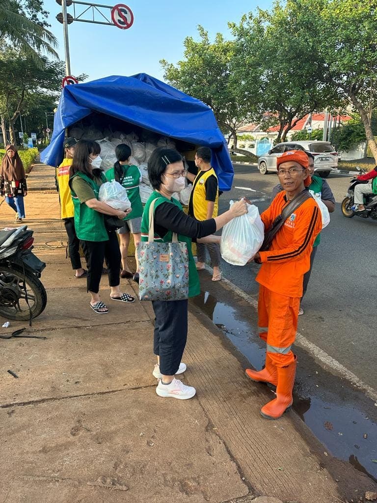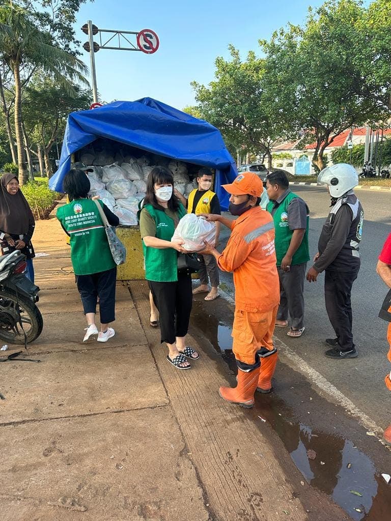 Tim Lotus Light Charity Society Maha Vihara Dayin mereka membagikan paket sembako kepada Ojol, Pasukan Orange, dan Pemulung yang sedang berada di sepanjang jalan.