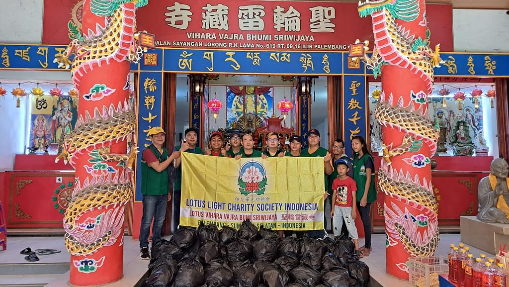 Pada Minggu, 16 April 2023, Lotus Light Charity Society – Vihara Vajra Bhumi Sriwijaya di Palembang melaksanakan aksi sosial yang sangat mulia. Pada hari itu, para pengurus dan relawan Vihara membagikan 300 paket sembako kepada warga sekitar dan beberapa wilayah di kota Palembang yang membutuhkan.