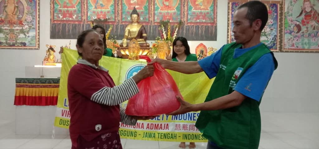 Dalam rangka merayakan Hari Raya Tri Suci Waisak 2567 BE dan Ulang Tahun Maha Guru, LLCS Vihara Vajra Bumi Karuna Admaja membagikan sembako berupa 18pcs beras @5kg, 18pcs gula @1kg, 18pcs minyak goreng @1liter, dan 4pcs mie instan kepada 18 umat Buddha prasejahtera.