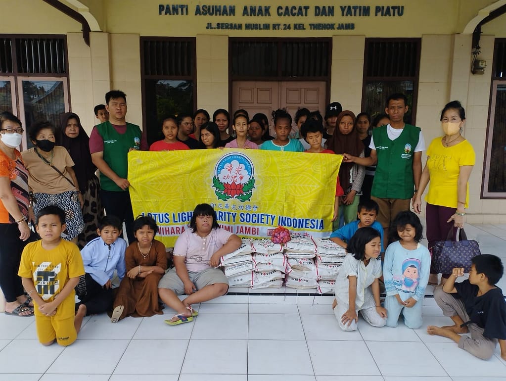 LLCS Vihara Vajra Bumi Jambi, Minggu 03 September 2023 berbagi kasih berupa pembagian beras kemasan 5KG sebanyak 60 karung dengan total keseluruhan sebanyak 300KG beras kepada 3 panti sosial yang ada di Kota Jambi yaitu: