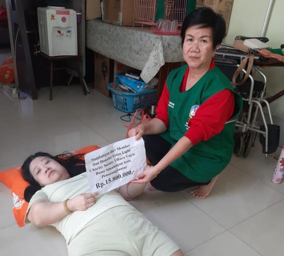 Sumbangan diserahkan langsung kepada Lien Hua Li Young/Rindawati sebesar Rp.15.800.000,-