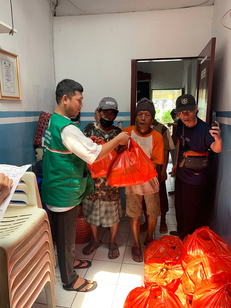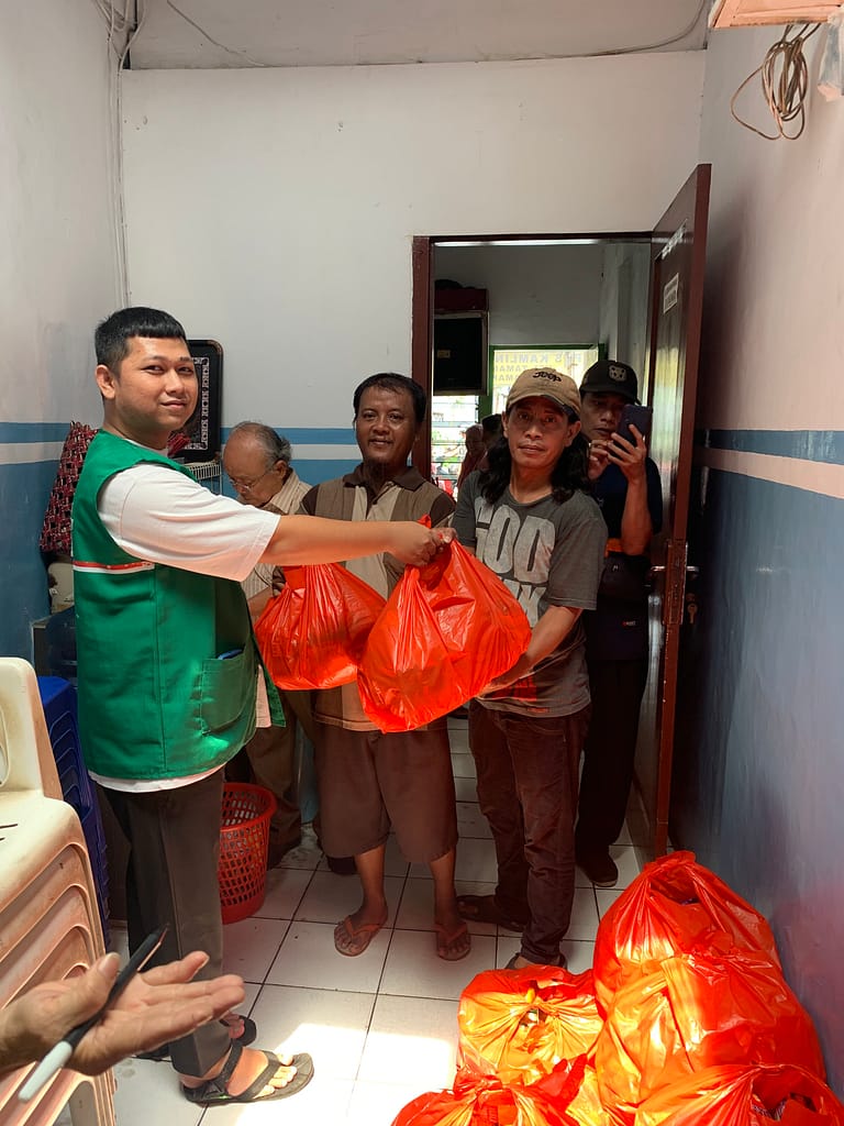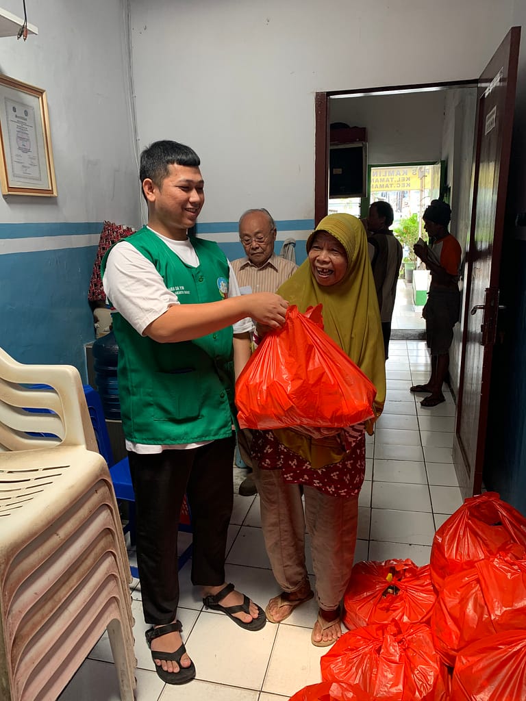 Bersama sama kami membagikan paket sembako kepada warga yang membutuhkan kepada para hansip, lansia, dan petugas kebersihan.