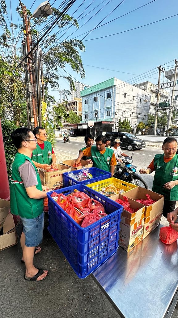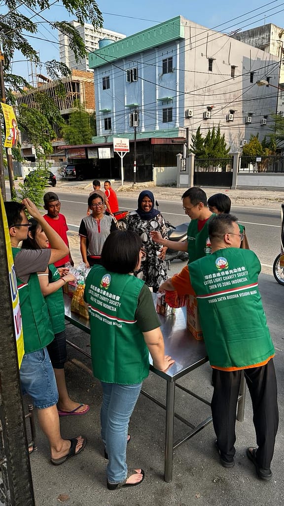 Medan, 7 April 2024 – Di tengah gemerlap bulan Ramadan, Lotus Light Charity Society Vihara Satya Buddha Visudhi Marga(棉蘭雷藏寺) di Medan tak tinggal diam, mereka membagikan takjil di depan gerbang Vihara. Masyarakat sekitar dan para pengendara becak serta ojol menjadi sasaran kebaikan mereka.