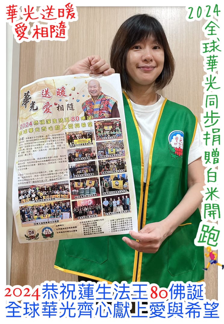 今年,恭逢蓮生法王80聖誕,這是一個值得慶祝的重要時刻。秉持著師尊慈悲為懷的精神,讓愛散發到世界各地。世界真佛宗華光功德會定於每年蓮生法王佛誕日舉辦「全球華光同步捐贈白米」的活動。各地分會,包括台灣、新加坡、馬來西亞、印尼、日本、英國、法國、德國、巴西、澳洲、加拿大等,將共襄盛舉,為社會送暖,獻上愛心。