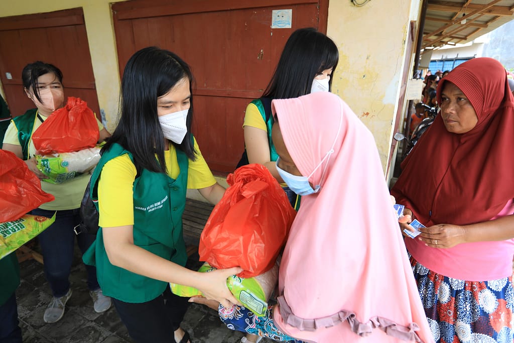 Salah satu kegiatan utama dalam bakti sosial ini adalah pembagian sembako kepada keluarga yang membutuhkan di Desa Lemo, Teluk Naga, Tangerang.