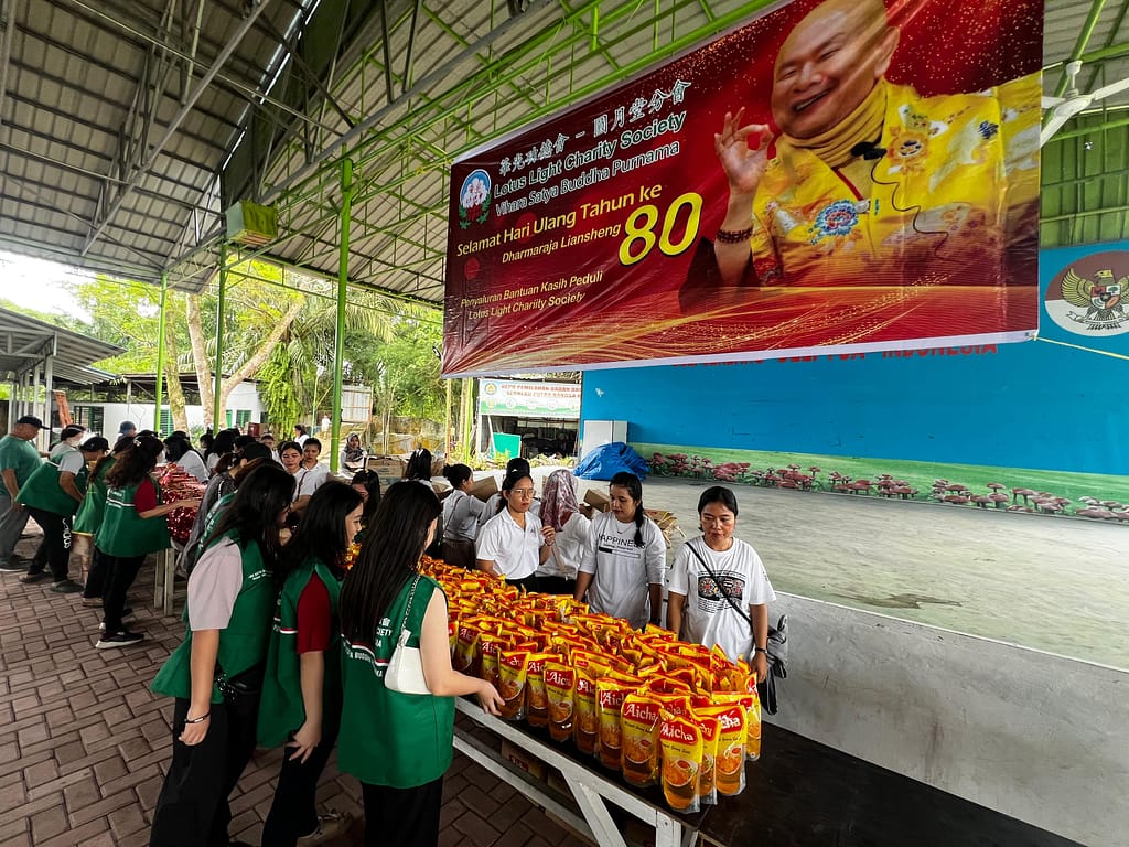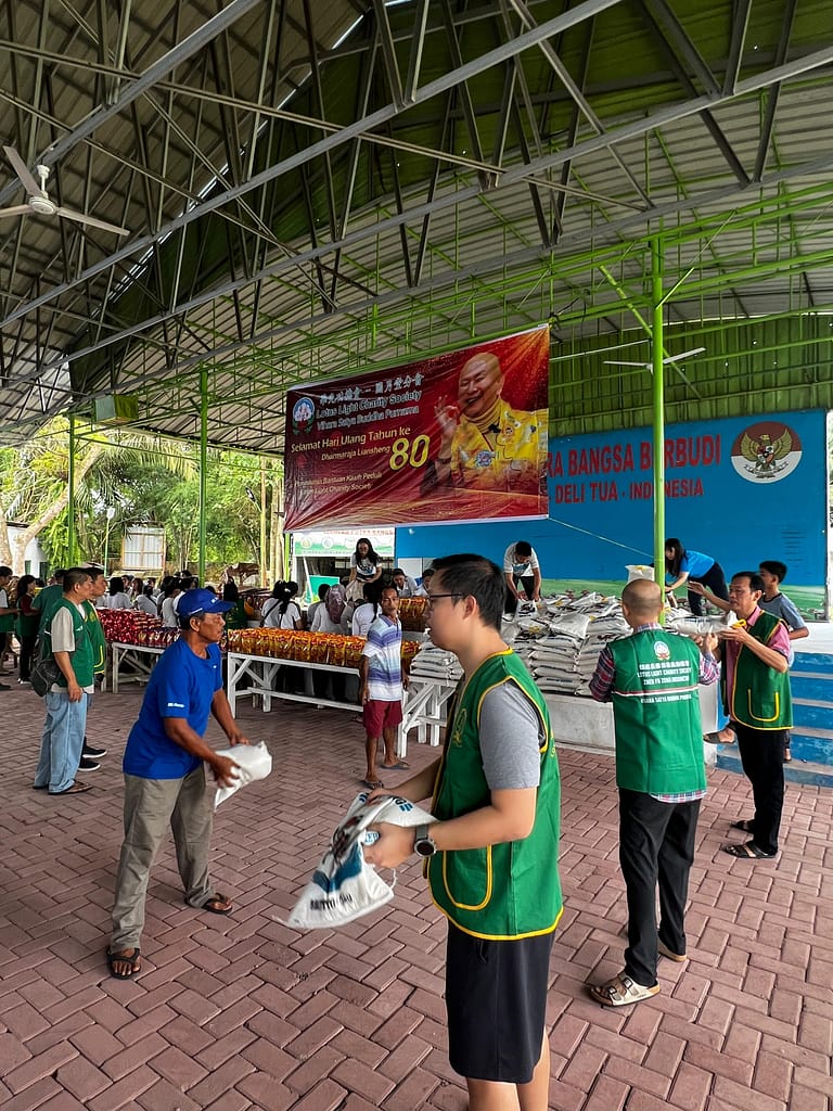 Lotus Light Charity Society Vihara Satya Buddha Purnama 圆月堂 Medan membagikan paket Sembako kasih kepada 300 keluarga / wali murid Sekolah Putra Bangsa Berbudi dan warga sekitar di Kecamatan Deli Tua, Kab. Deli Serdang.