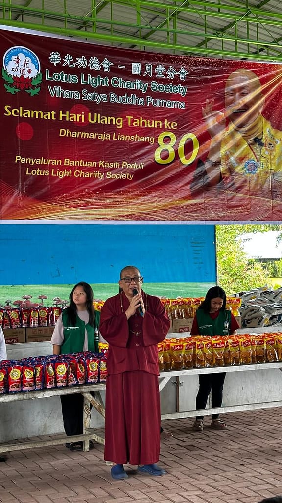Kegiatan kali ini juga bertepatan perayaan Hari Jadi Dharmaraja Liansheng ke-80, Dharmaraja Liansheng mengajarkan tekun berbhavana catur brahmavihara yaitu kasih sayang dan bantu insan disekitar kita, karena membantu mereka sama dengan membantu diri sendiri. LLCS membagikan 300 paket Sembako yang terdiri dari Beras, Minyak, Susu, Mie, Kecap, Teh, dan Makanan Ringan agar semua dapat terbantu akan kebutuhan pangan keluarga mereka.