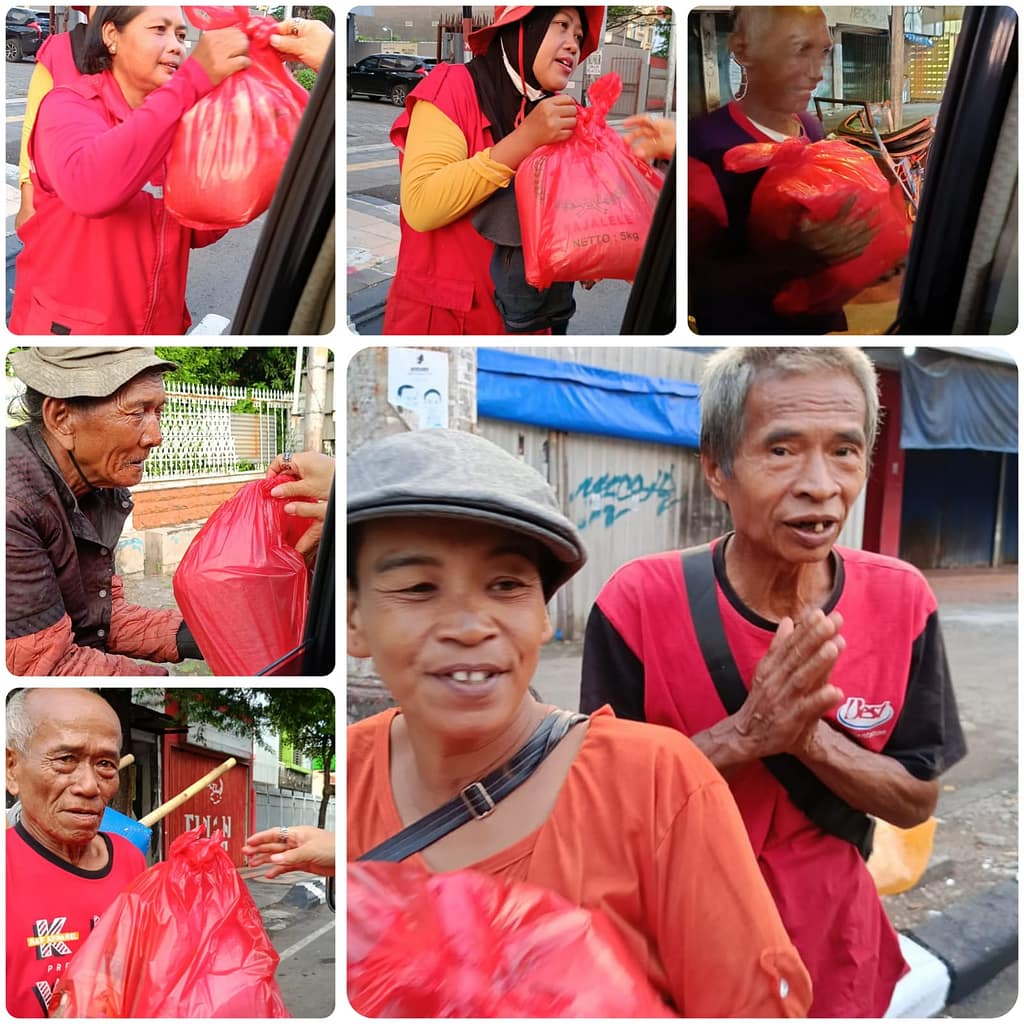 Kami membagikan 100 paket sembako yang terdiri dari :
