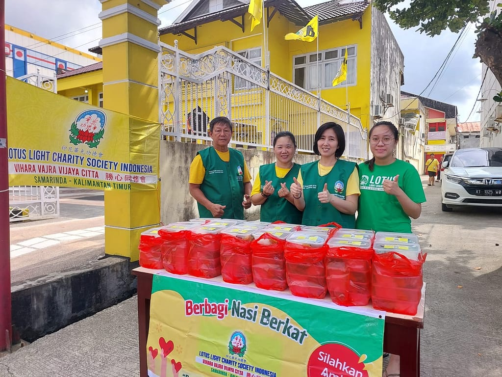 Menyambut bulan bakti orang tua yang jatuh pada bulan 7 imlek, maka tepat pada tanggal 1 bulan 7 imlek tahun ini, Lotus Light Charity Society Vihara Vajra Vijaya Citta勝心同修會 – Samarinda, kembali melakukan kegiatan berbagi Nasi Berkat dengan mengambil tempat di depan Vihara.