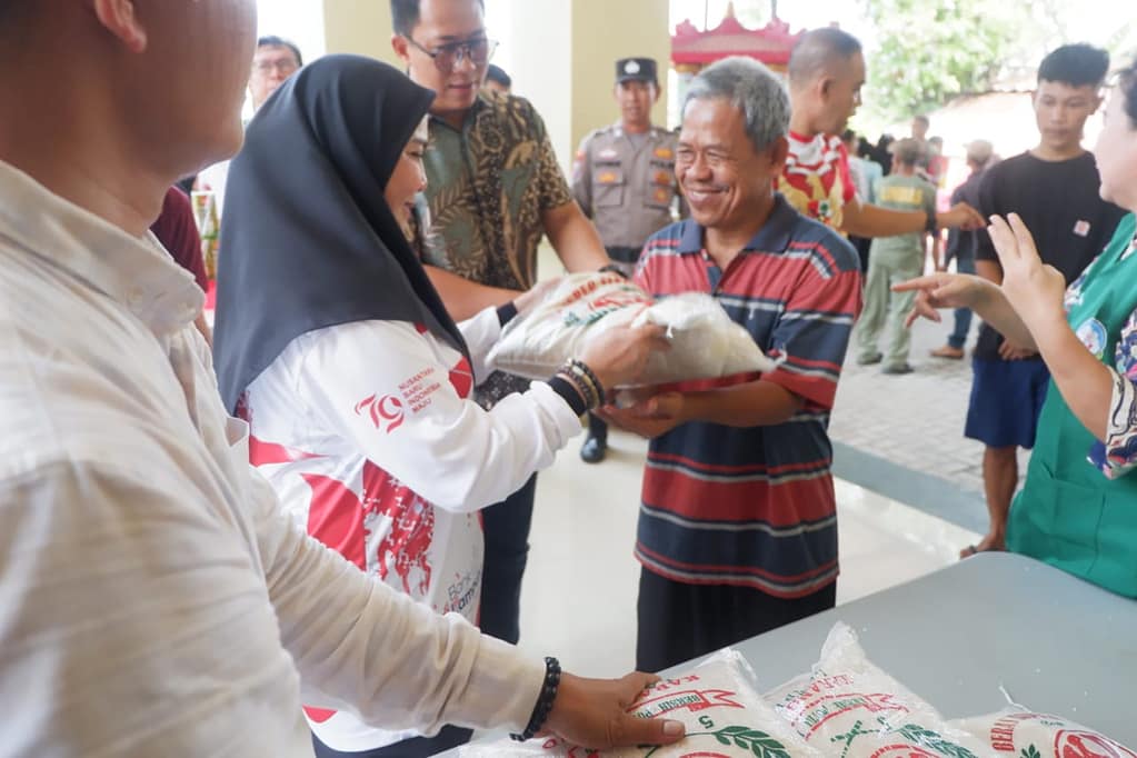 Bakti sosial tersebut berupa beras isi 5kg sebanyak 900 paket dan 200 paket untuk kegiatan donor darah, total ada 1.100 paket beras yang diberikan kepada masyarakat.