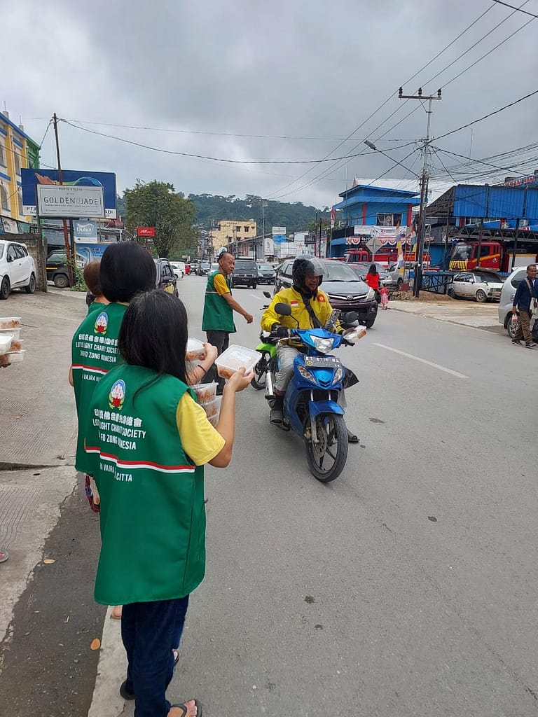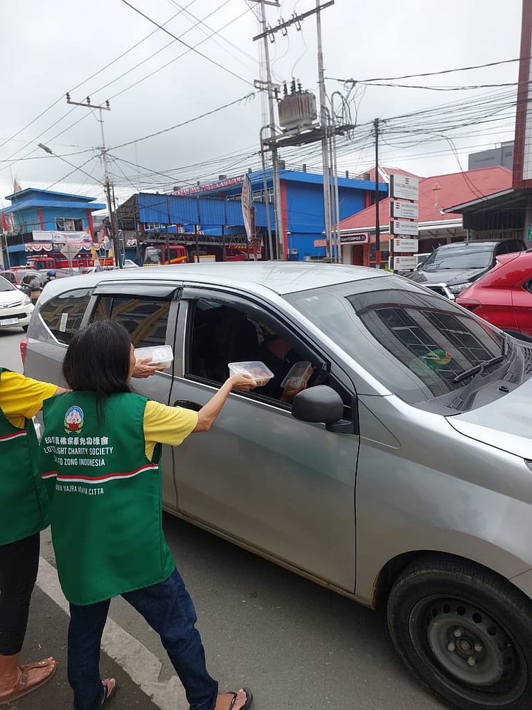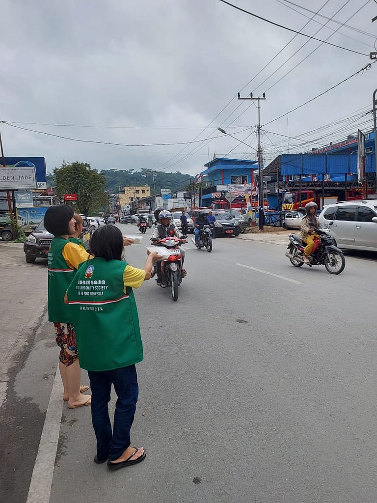 Sekitar pukul 10.00 pagi, sebanyak 230 porsi Nasi Berkat yang dikemas dalam bentuk kotak sudah mulai disiapkan di pinggir jalan di depan Vihara. Beberapa orang pengurus LLCS sudah mulai membagikan Nasi Berkat kepada para pengguna jalan yang terdiri dari pengendara motor, pejalan kaki, ojek online, supir truk dan para pekerja bangunan.