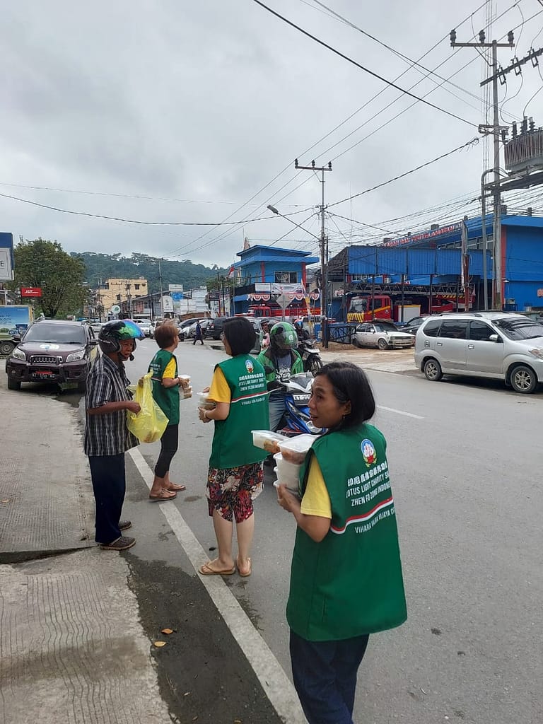 Lotus Light Charity Society Vihara Vajra Vijaya Citta – Samarinda, kembali melakukan kegiatan berbagi Nasi Berkat dengan mengambil tempat di depan Vihara.