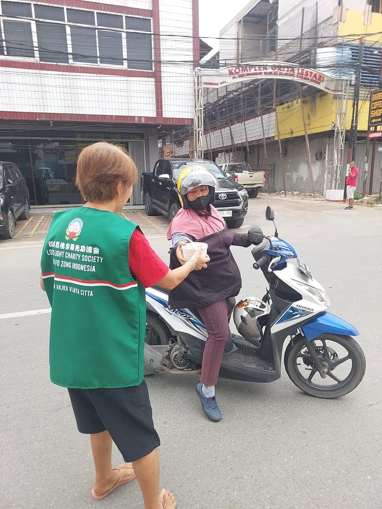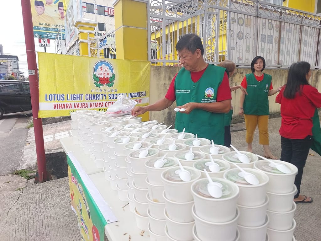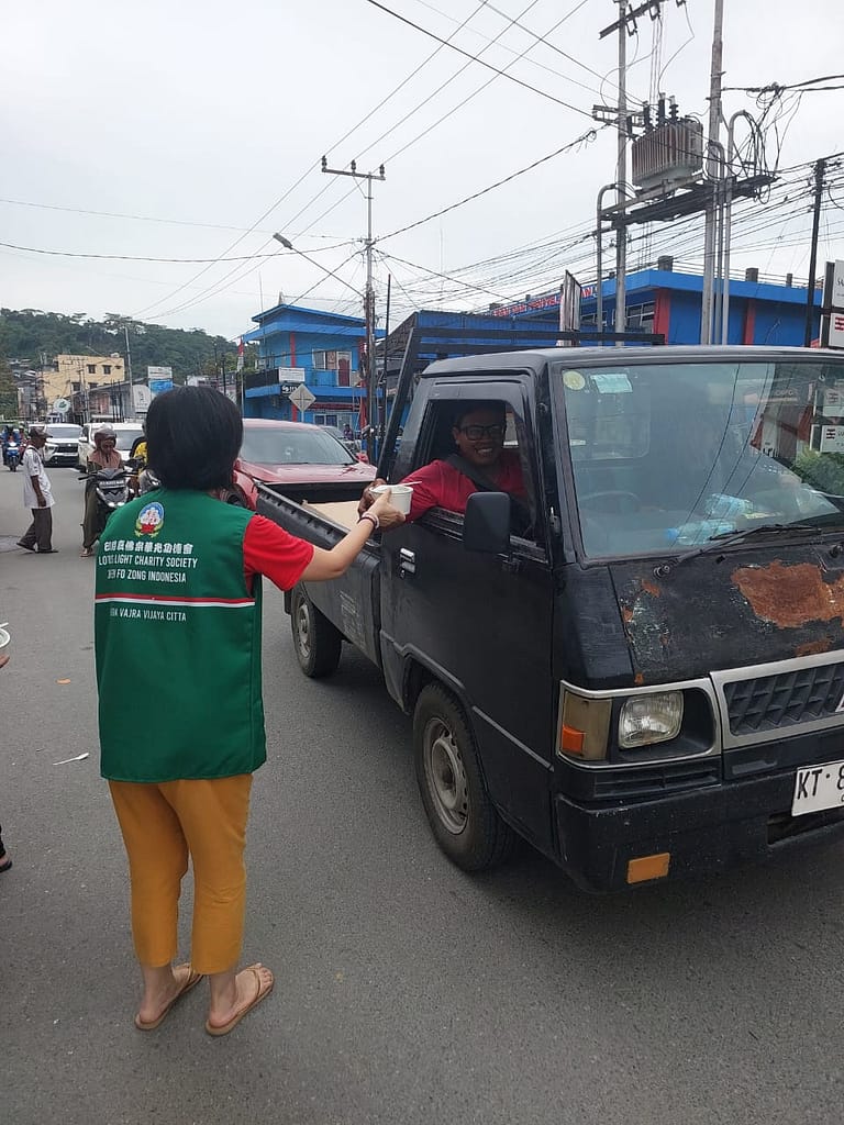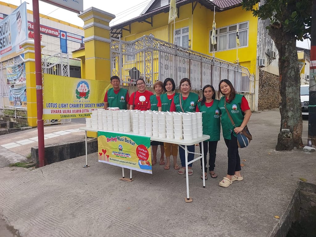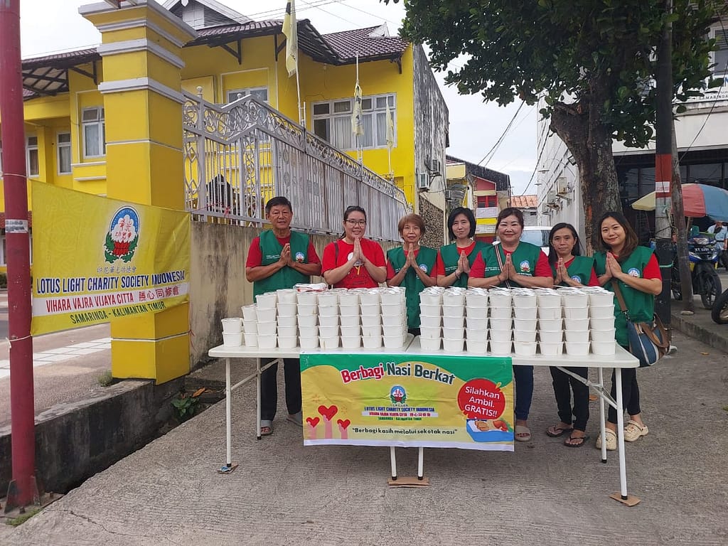 Lotus Light Charity Society Vihara Vajra Vijaya Citta – Samarinda, kembali melakukan kegiatan berbagi Nasi Berkat dengan mengambil tempat di depan Vihara.