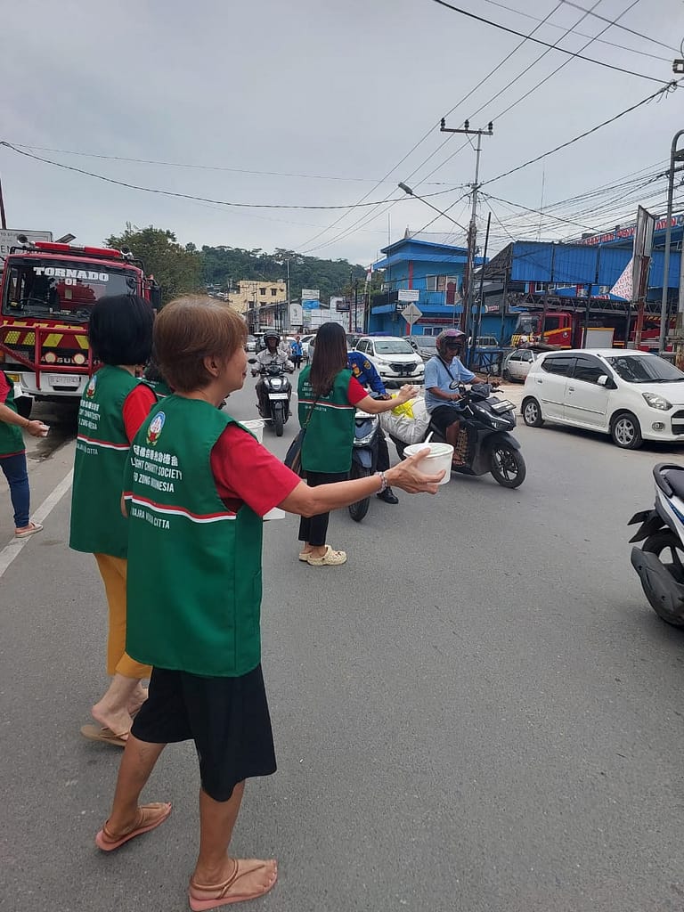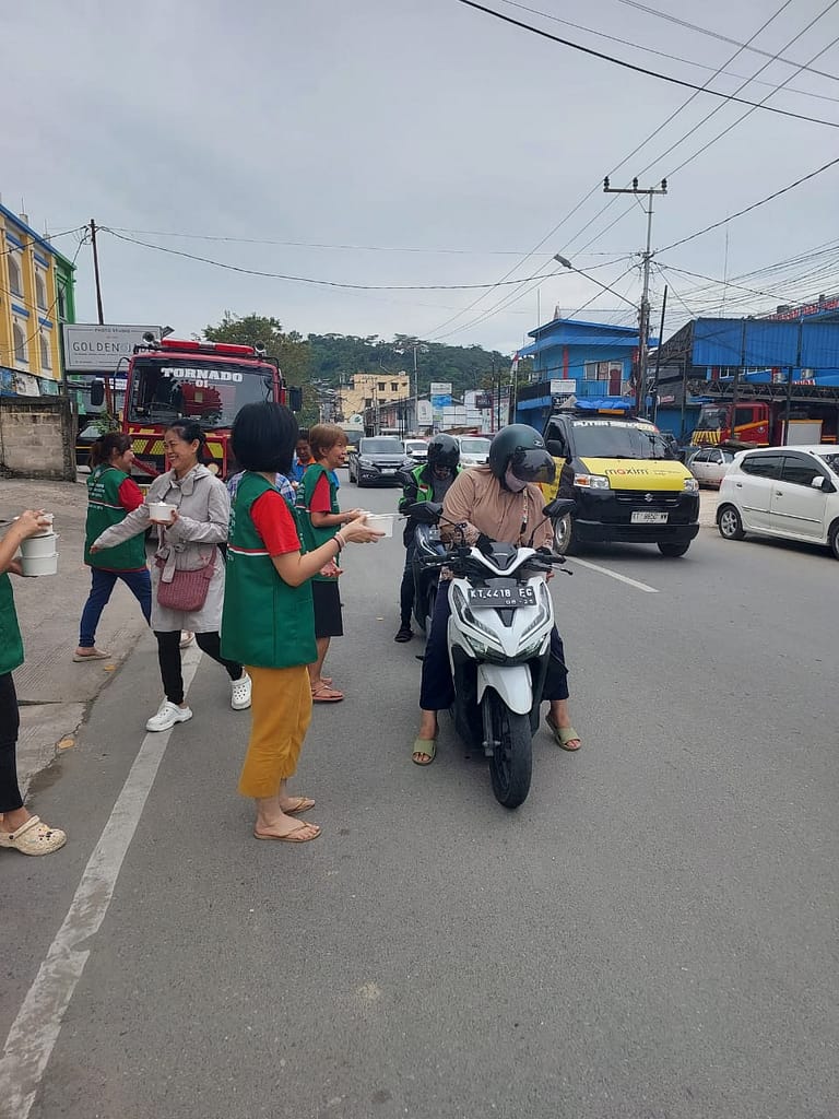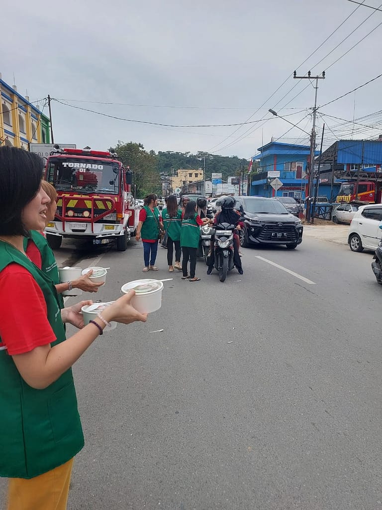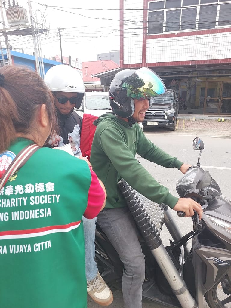 LLCS Vihara Vajra Vijaya Citta – Samarinda, kembali melakukan kegiatan berbagi Nasi Berkat di depan Vihara