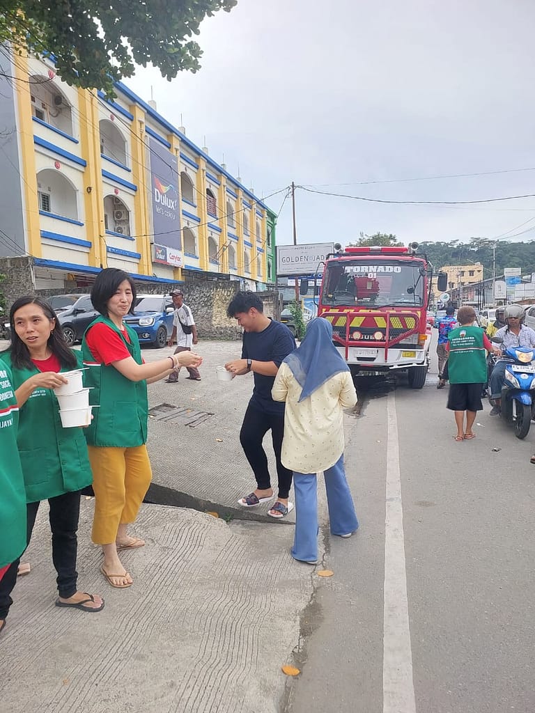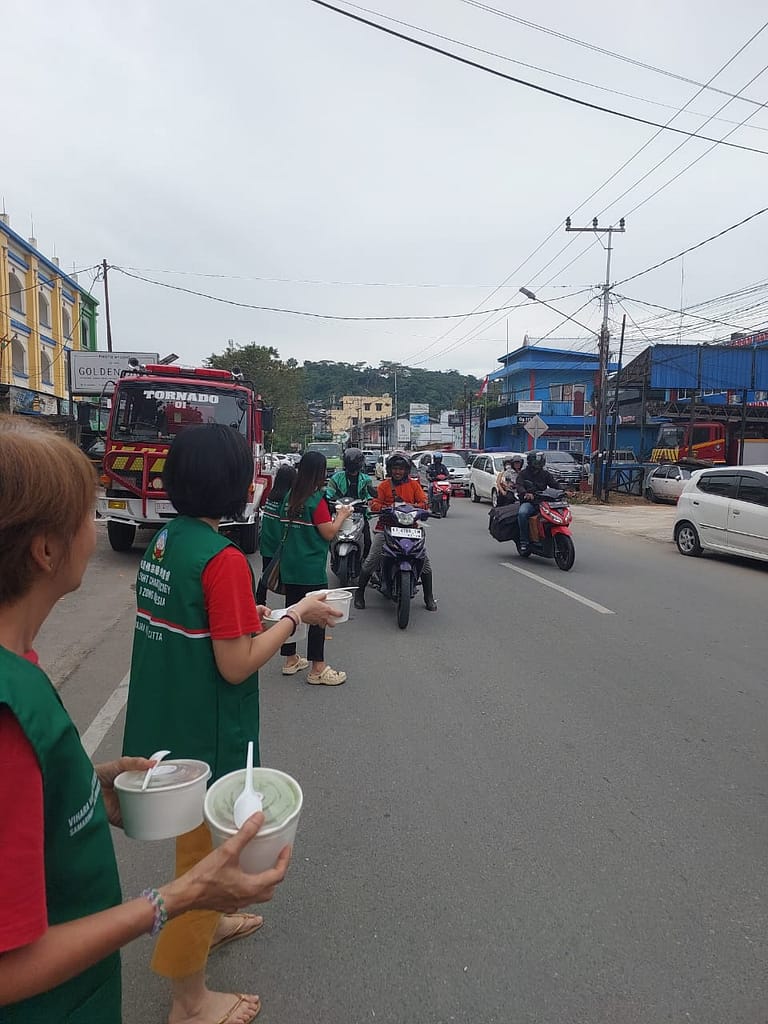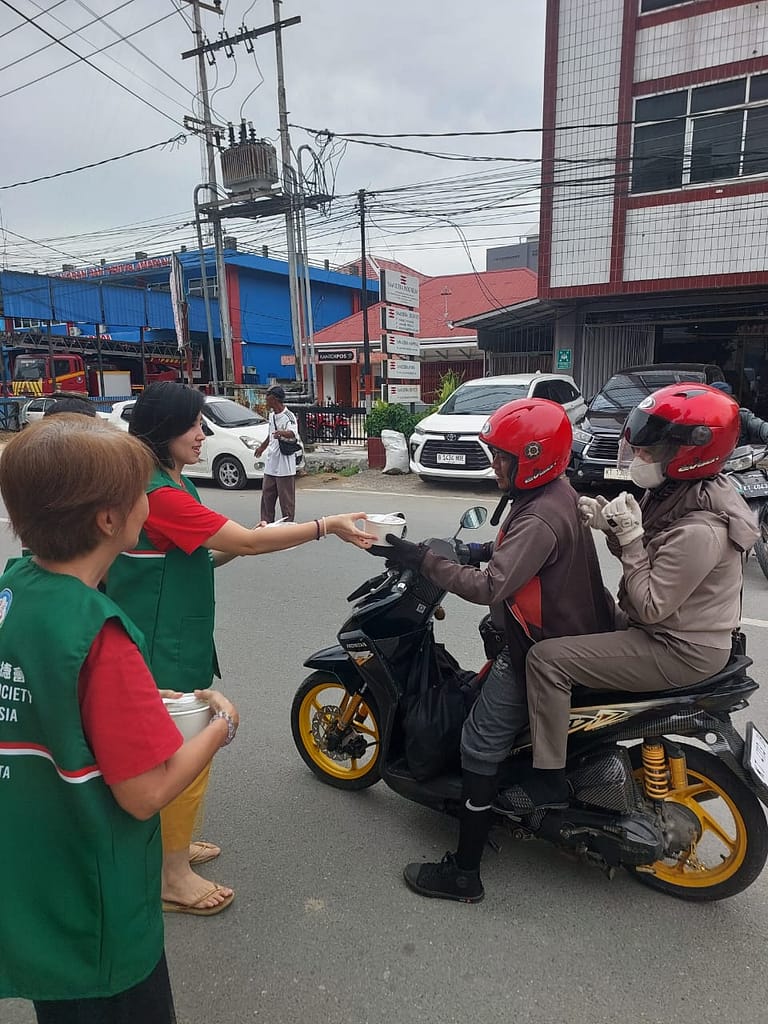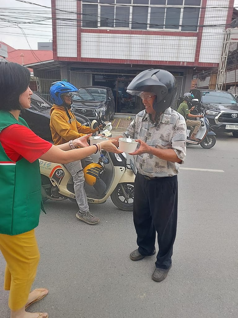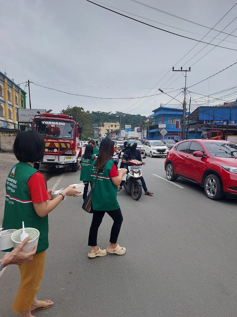 LLCS Vihara Vajra Vijaya Citta – Samarinda, kembali melakukan kegiatan berbagi Nasi Berkat di depan Vihara