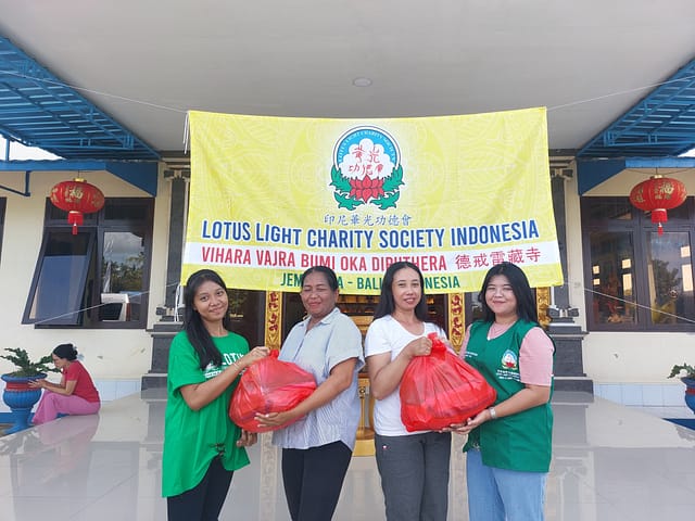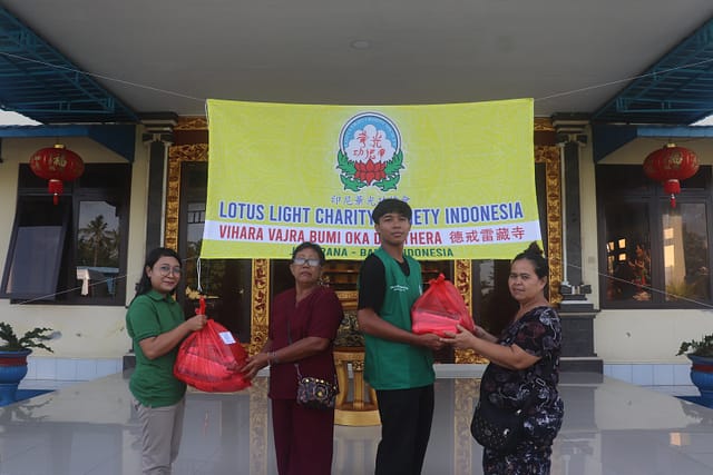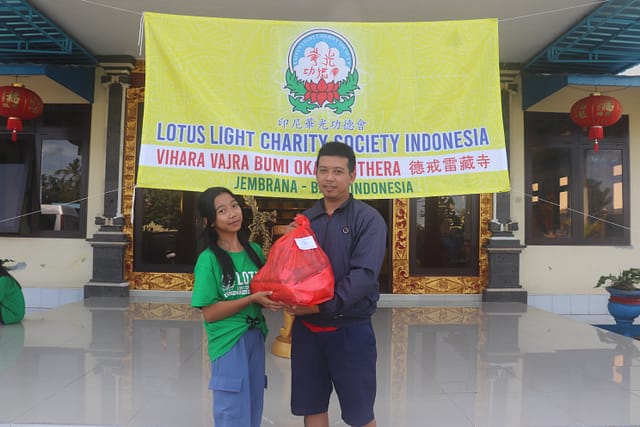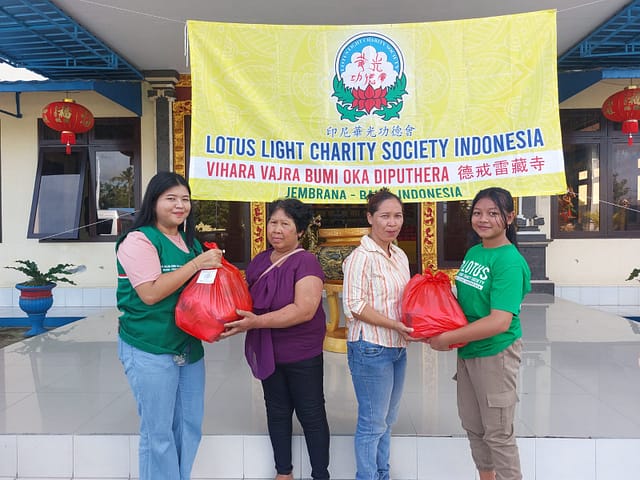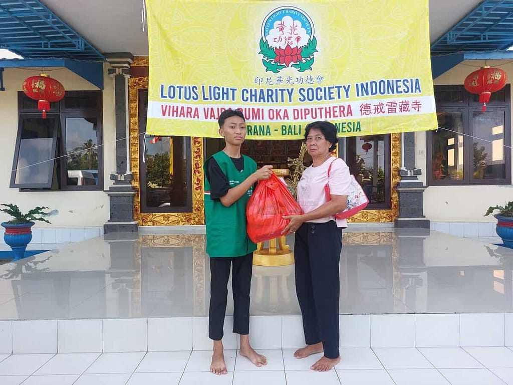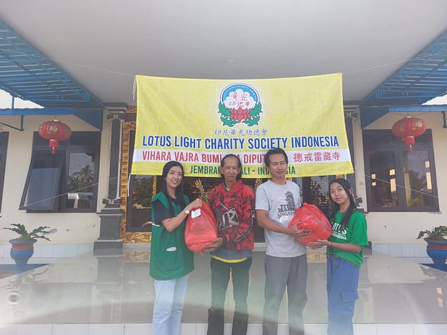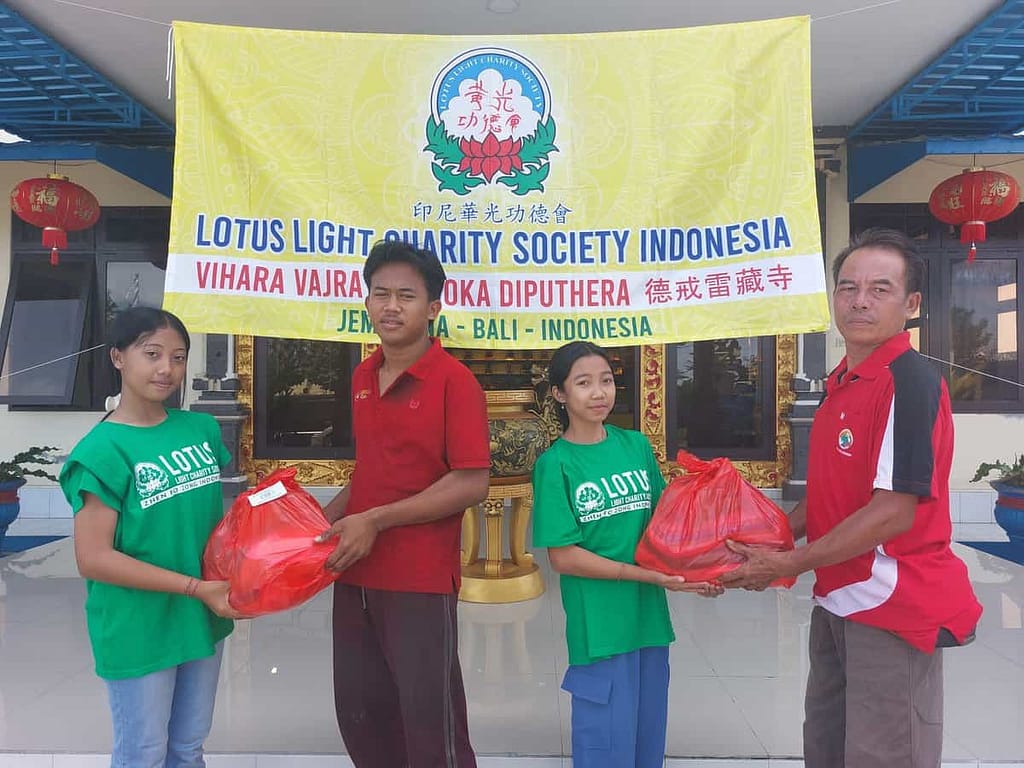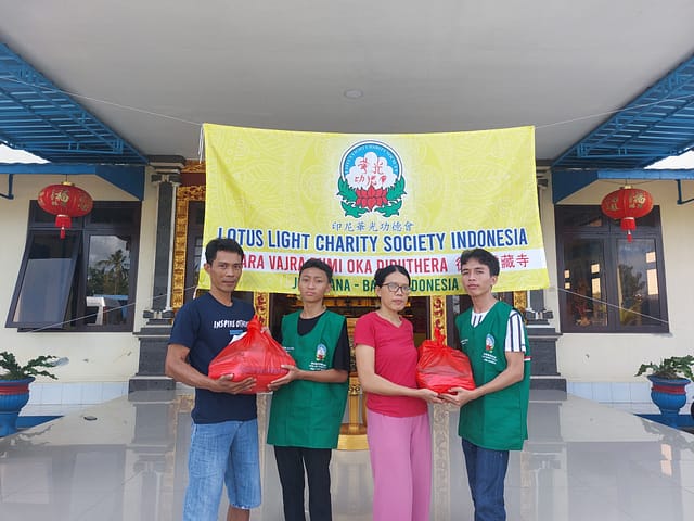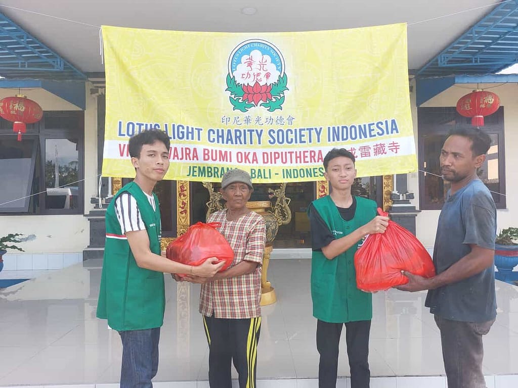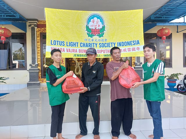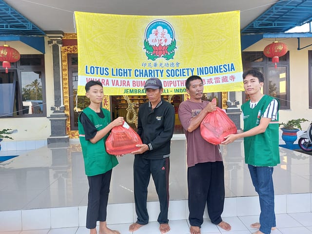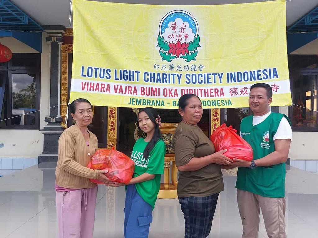Atas pancaran adistana Mahamulacarya Lian Sheng dan Para Buddha Bodhisatva, menyambut tahun baru Imlek 2025 Lotus Light Charity Society Vihara Vajra Bumi Oka Diputhera, Jembrana – Bali, pada tanggal 25 Januari 2025 mengadakan bakti sosial pembagian sembako di depan vihara kepada masyarakat prasejahtera.