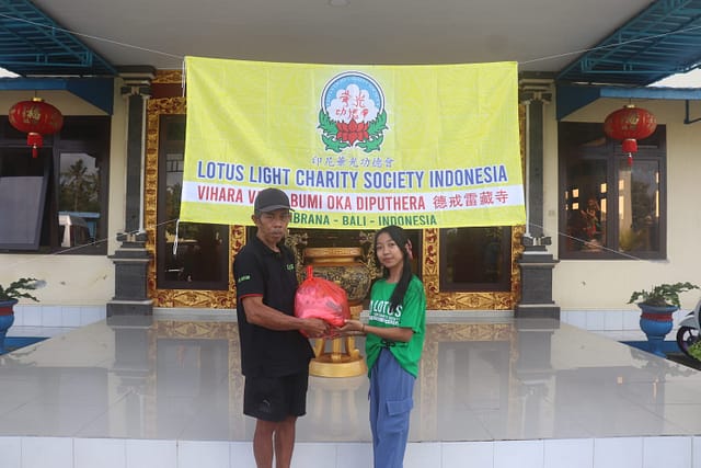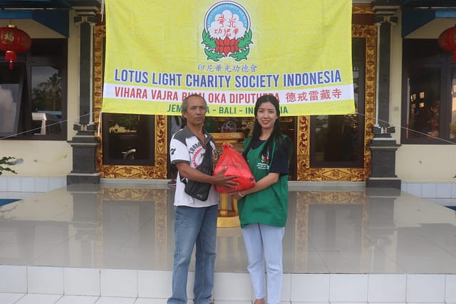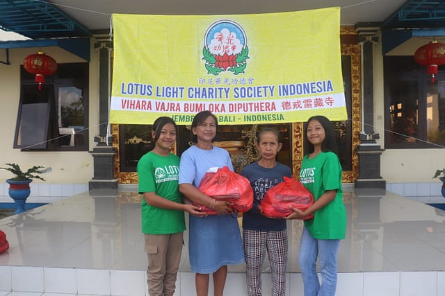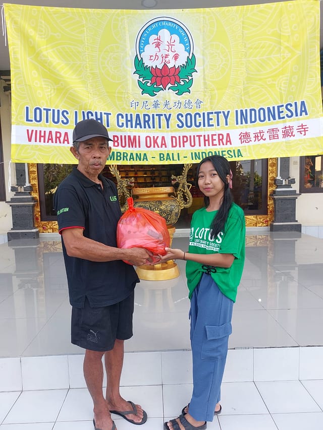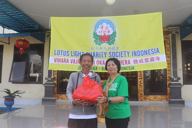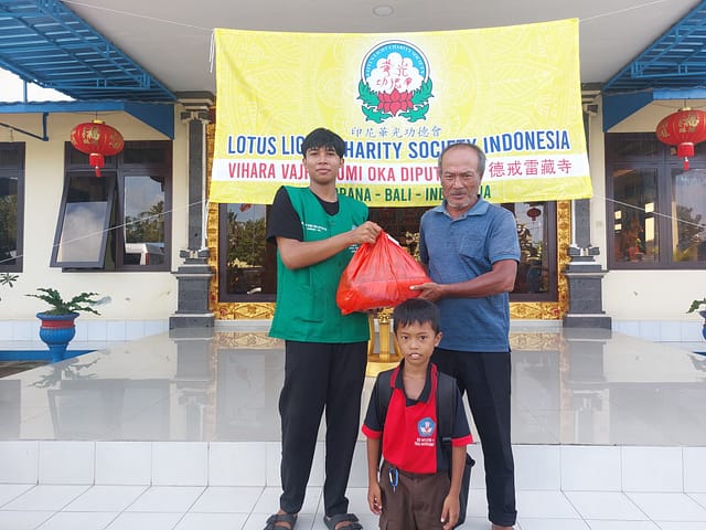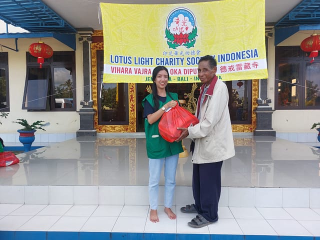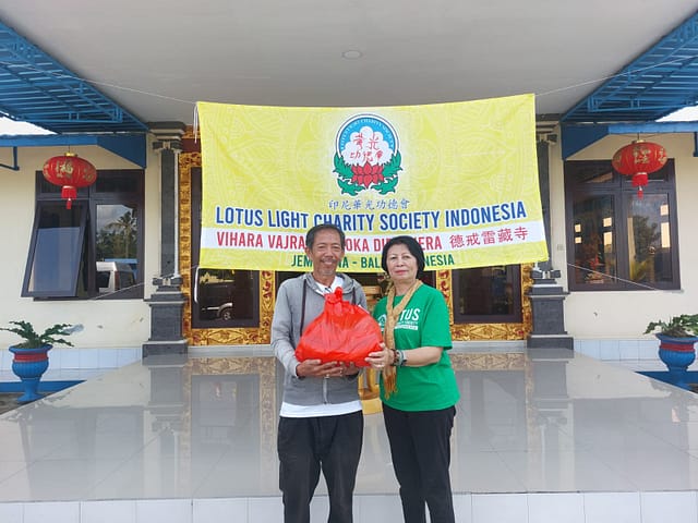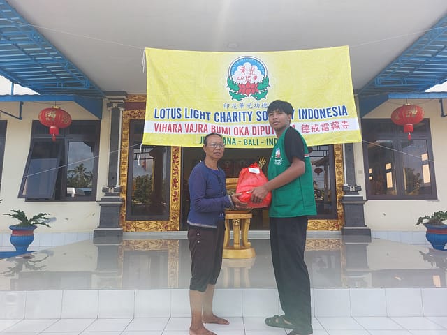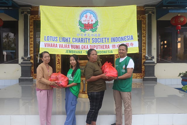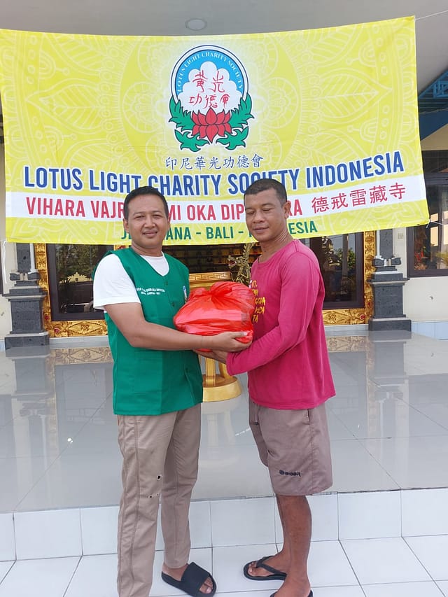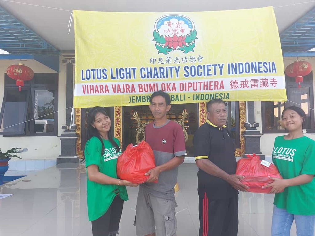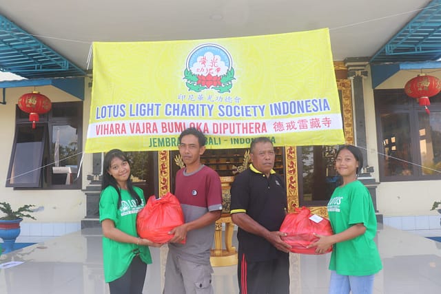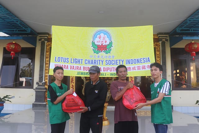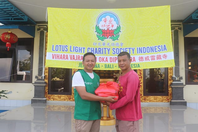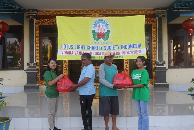 Atas pancaran adistana Mahamulacarya Lian Sheng dan Para Buddha Bodhisatva, menyambut tahun baru Imlek 2025 Lotus Light Charity Society Vihara Vajra Bumi Oka Diputhera, Jembrana – Bali, pada tanggal 25 Januari 2025 mengadakan bakti sosial pembagian sembako di depan vihara kepada masyarakat prasejahtera.