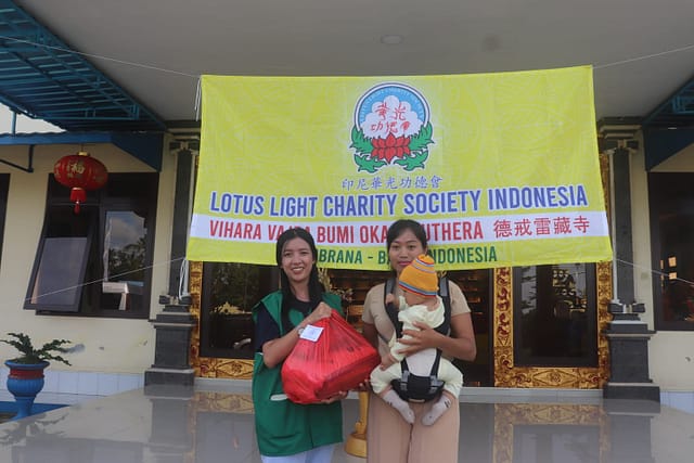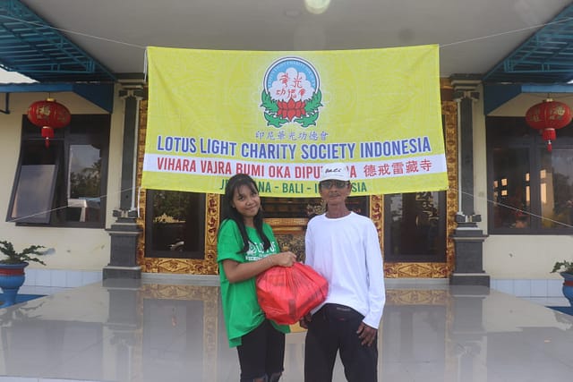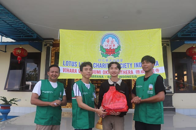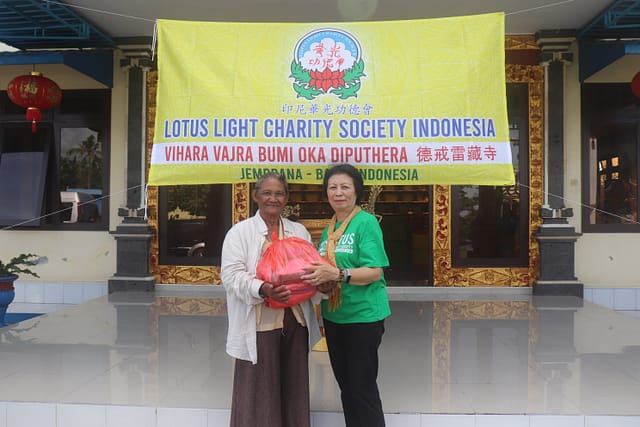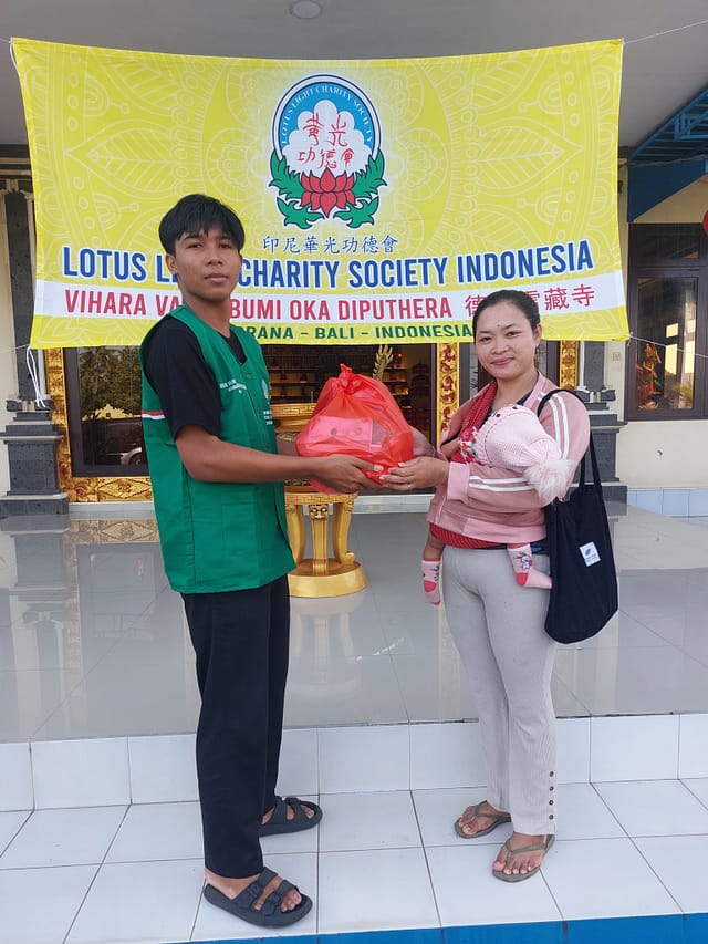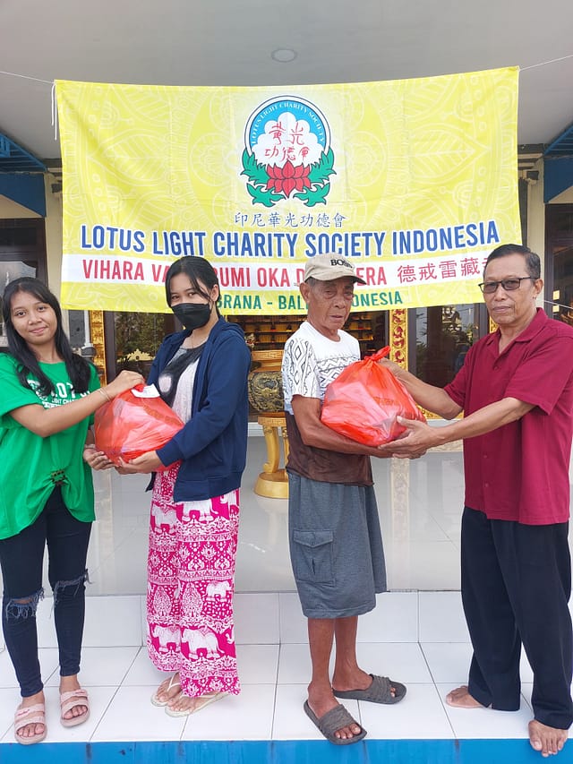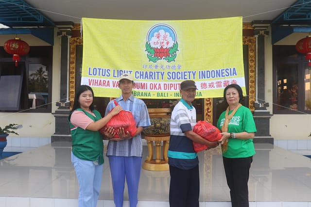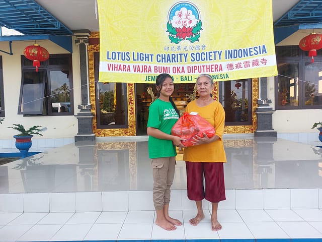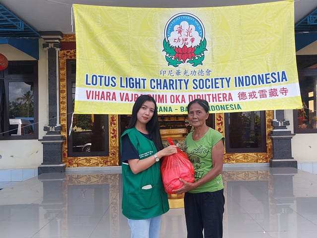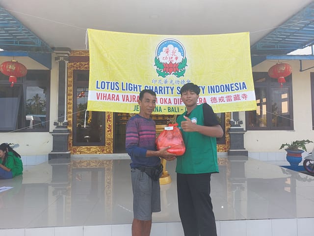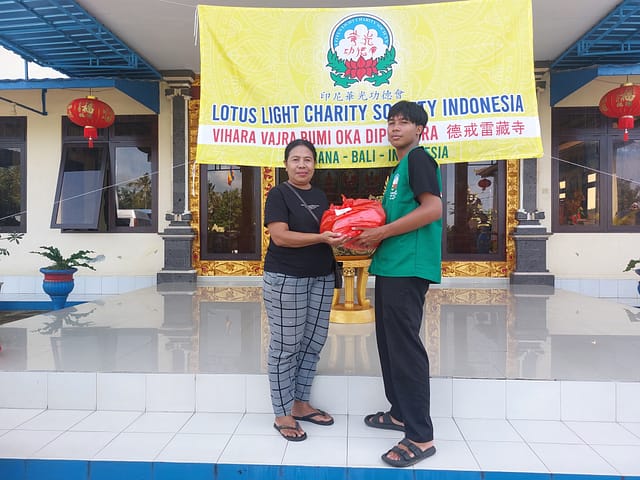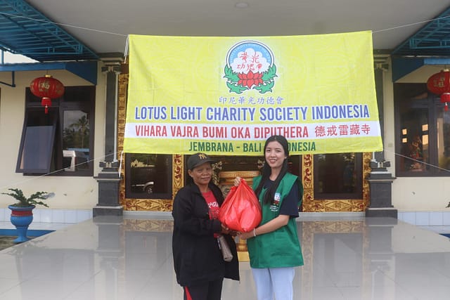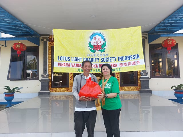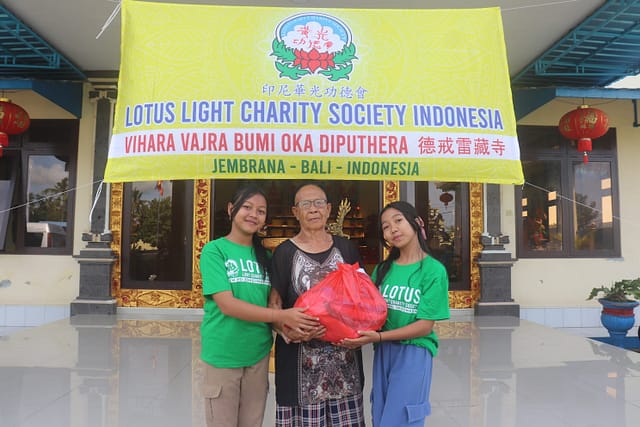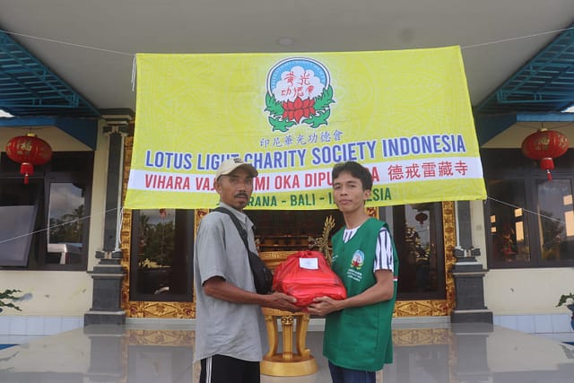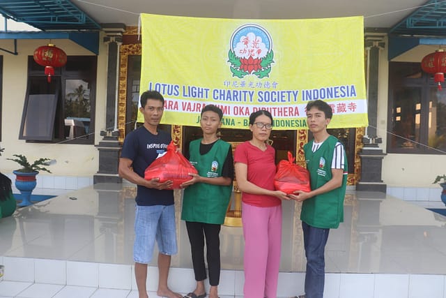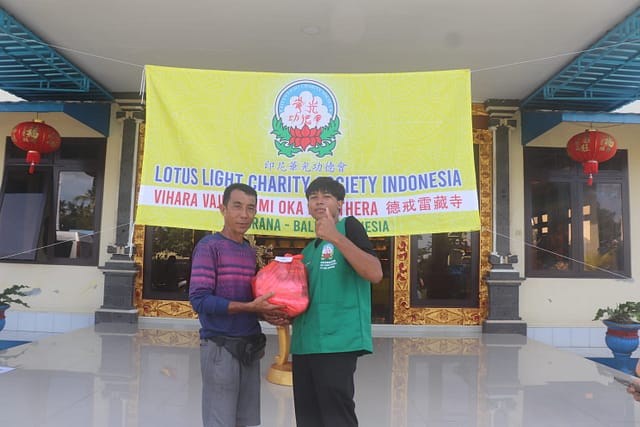 Atas pancaran adistana Mahamulacarya Lian Sheng dan Para Buddha Bodhisatva, menyambut tahun baru Imlek 2025 Lotus Light Charity Society Vihara Vajra Bumi Oka Diputhera, Jembrana – Bali, pada tanggal 25 Januari 2025 mengadakan bakti sosial pembagian sembako di depan vihara kepada masyarakat prasejahtera.