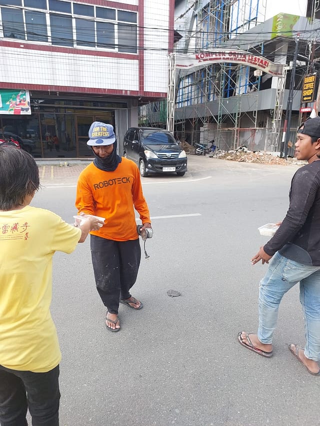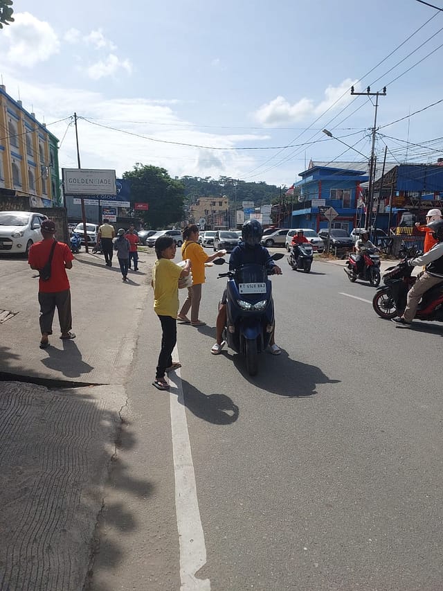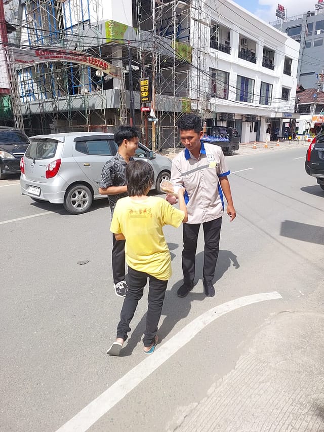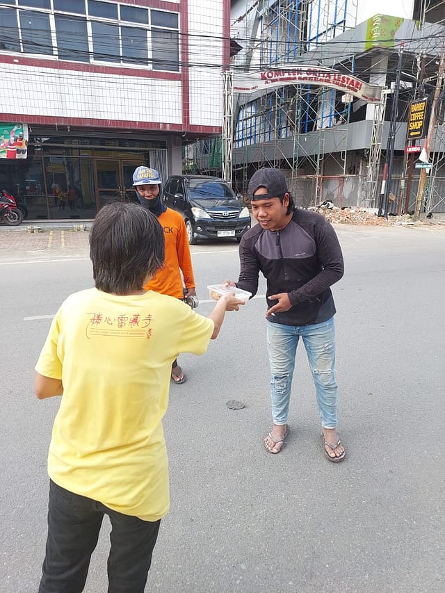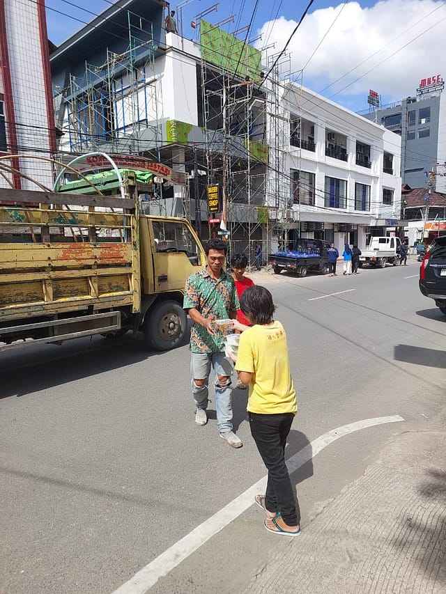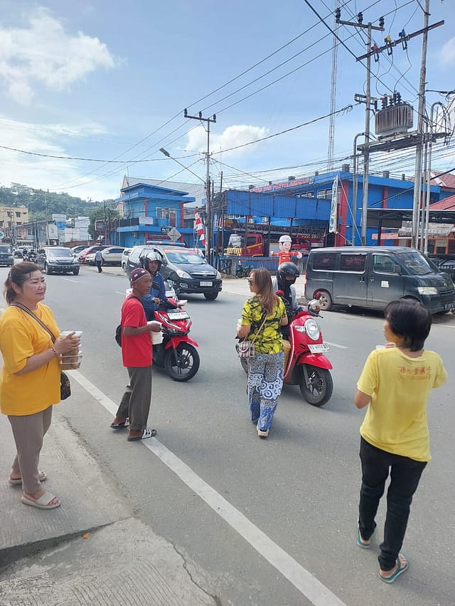 Jumat, 28 Februari 2025 (Che it bulan 2) Lotus Light Charity Society Vihara Vajra Vijaya Citta 勝心同修會 – Samarinda, Melakukan kegiatan berbagi Nasi Berkat perdana di tahun 2025, dengan mengambil tempat di depan Vihara.