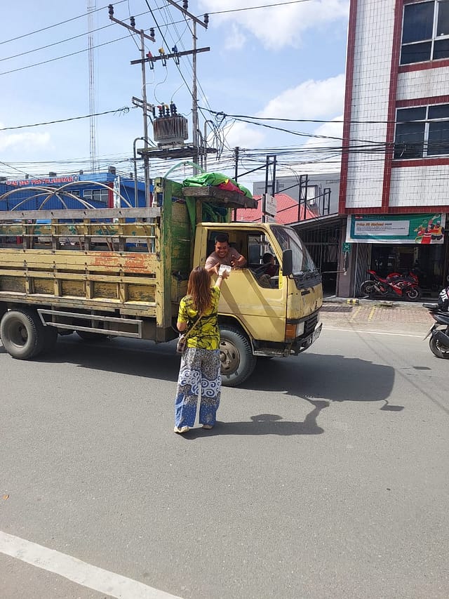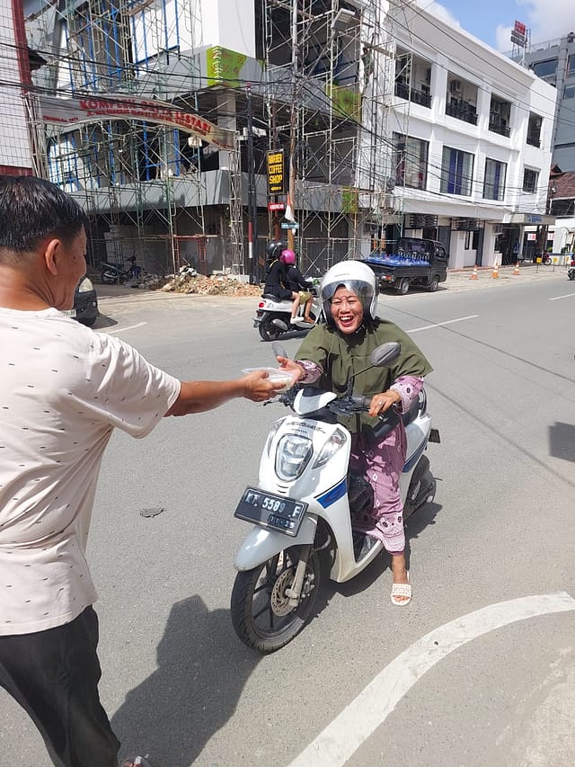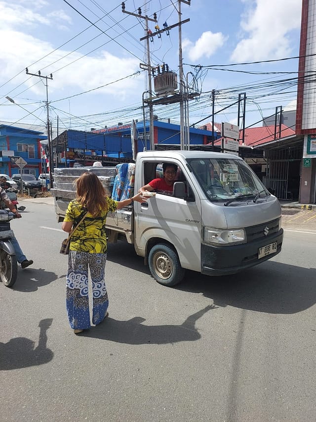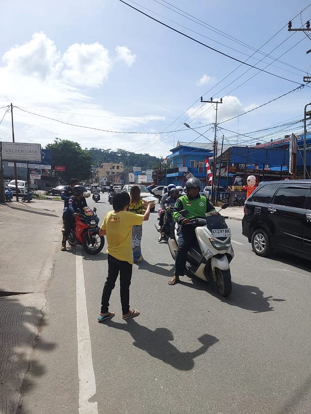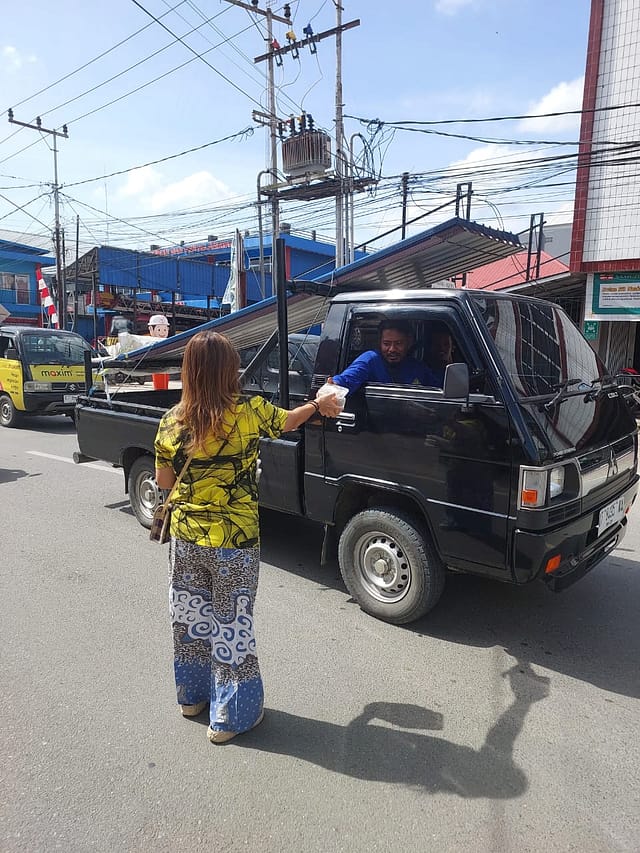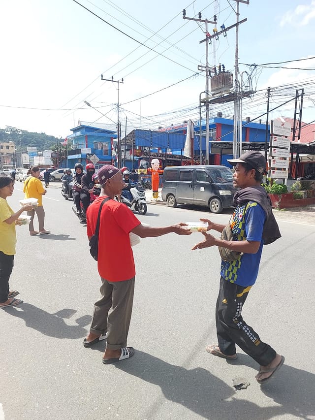 Jumat, 28 Februari 2025 (Che it bulan 2) Lotus Light Charity Society Vihara Vajra Vijaya Citta 勝心同修會 – Samarinda, Melakukan kegiatan berbagi Nasi Berkat perdana di tahun 2025, dengan mengambil tempat di depan Vihara.