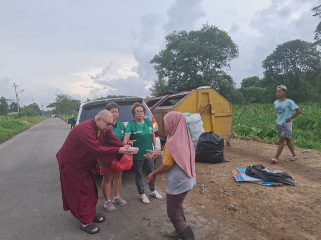 LLCS Vajra Bumi Kertayuga 真德雷藏寺 Pontianak bagikan nasi bungkus untuk berbuka Puasa