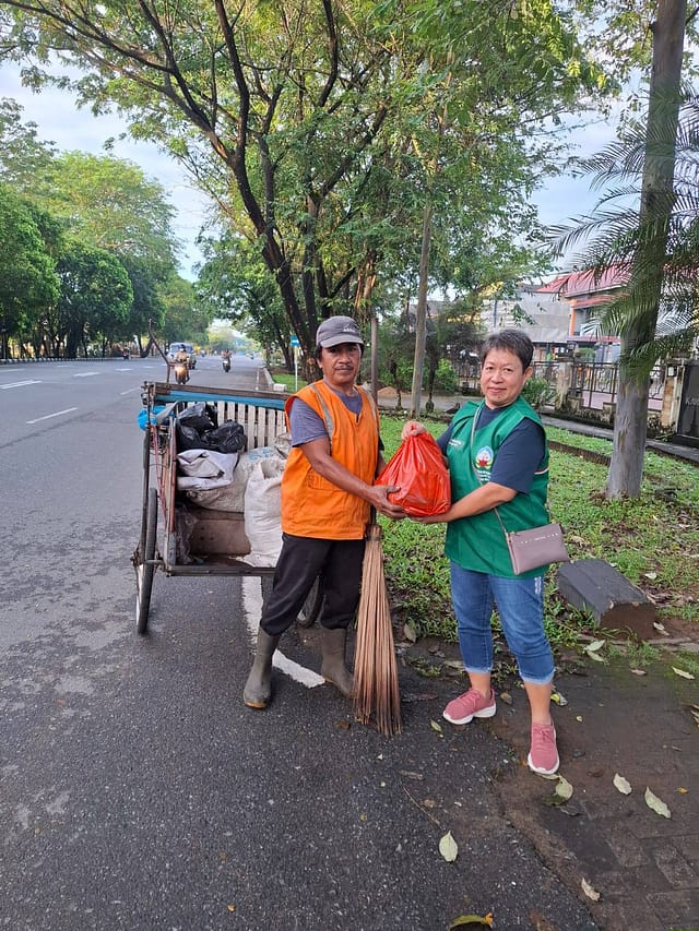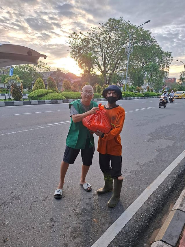 LLCS Vihara Vajra Bumi Kertayuga 真德雷藏寺Pontianak bagikan Paket Sembako untuk Petugas Kebersihan Jalan