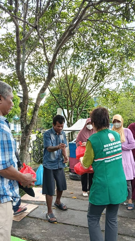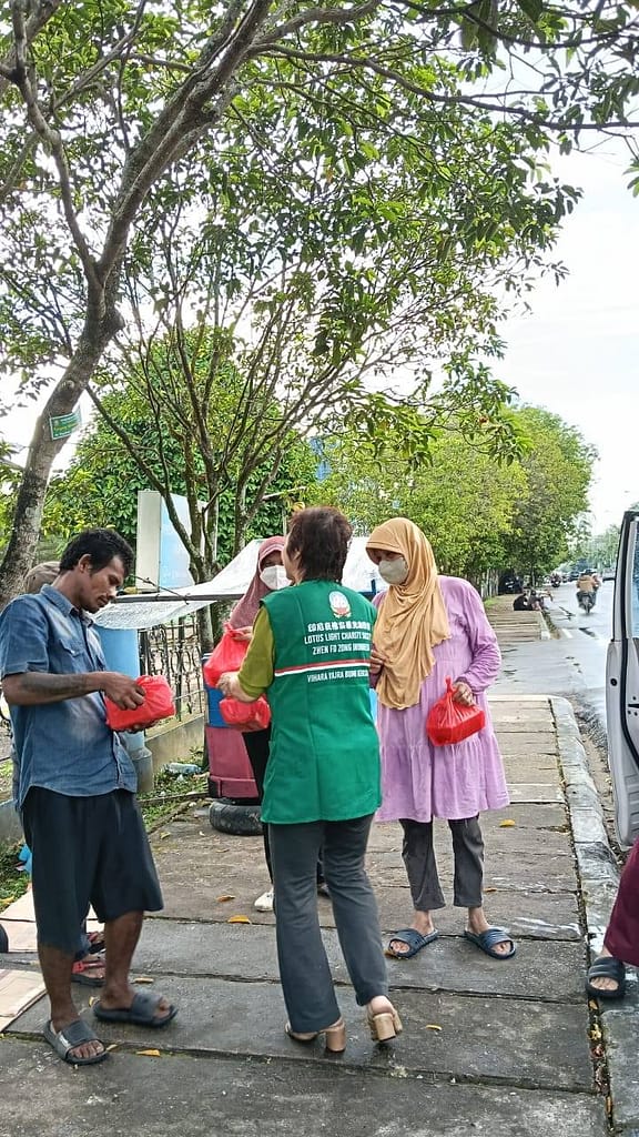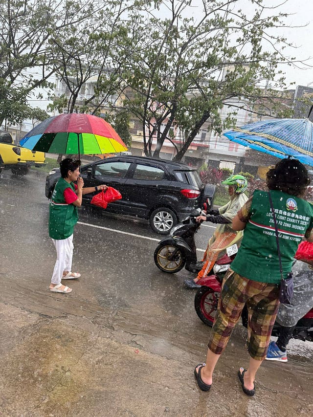 “Kami ingin memberikan sesuatu yang praktis dan bergizi bagi masyarakat yang sedang berpuasa. Semoga nasi goreng ini dapat membantu mereka berbuka dengan penuh rasa syukur,” ujar salah satu perwakilan Lotus Light Charity Society – Vihara Vajra Bumi Kertayuga 真德雷藏寺.