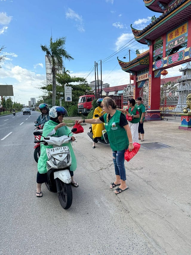 Kegiatan ini dilakukan di lokasi strategis di sekitar Pontianak menjelang waktu berbuka puasa. Ratusan porsi nasi goreng yang lezat disiapkan dengan penuh kepedulian dan semangat berbagi. Para penerima, mulai dari pejalan kaki, tukang ojek, hingga warga prasejahtera, menyambut hangat pemberian ini.