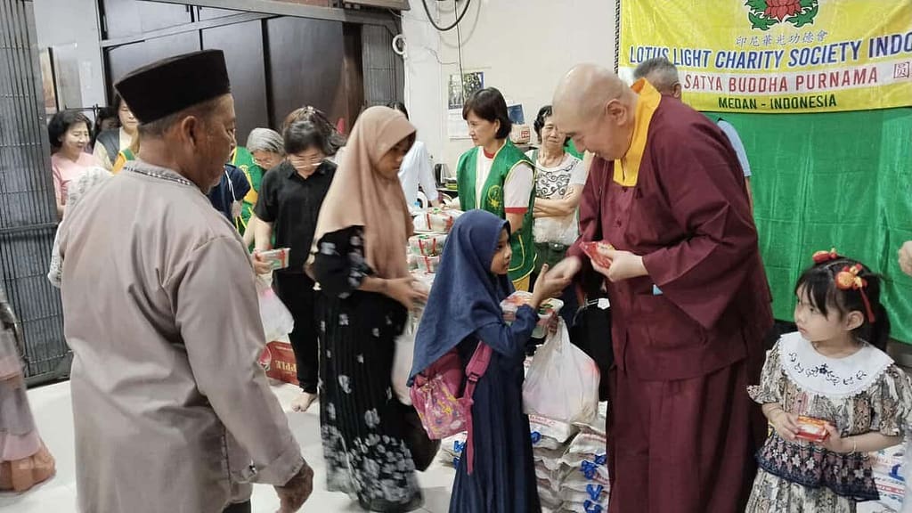 Lotus Light Charity Society Vihara Satya Buddha Purnama圆月堂 Medan, berbuka puasa bersama dengan anak-anak yatim Yayasan Alhisan, indah kerukunan beragama melambangkan semangat kebhinekaan tunggal ika dari NKRI.