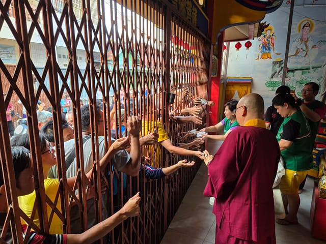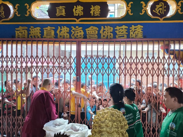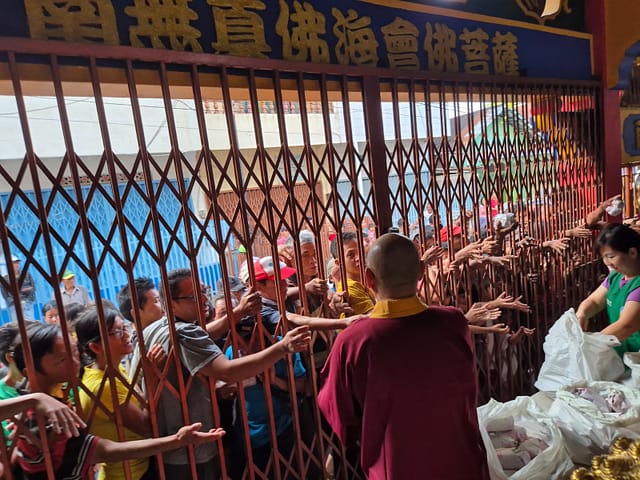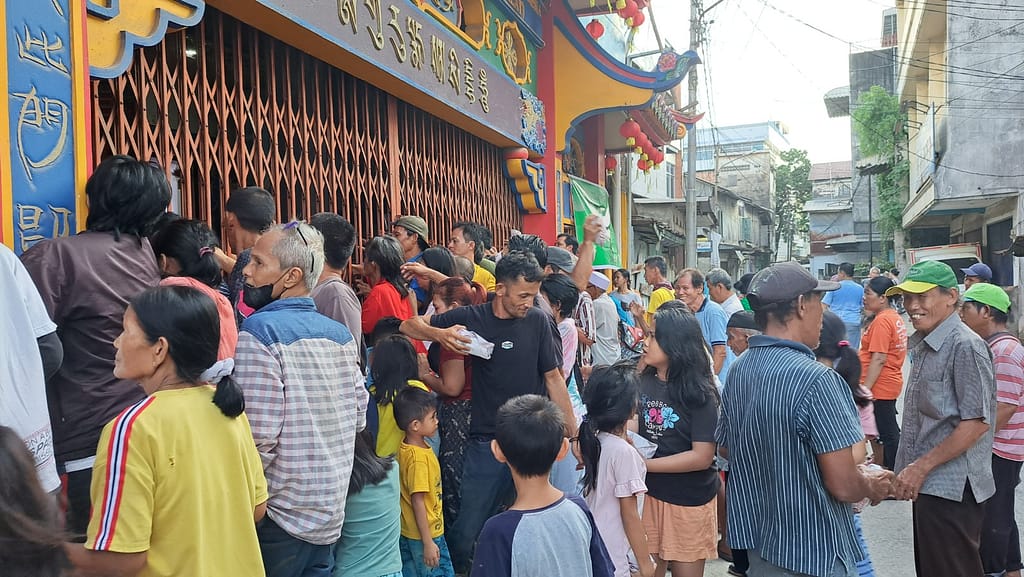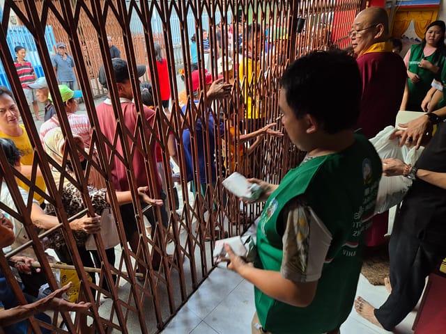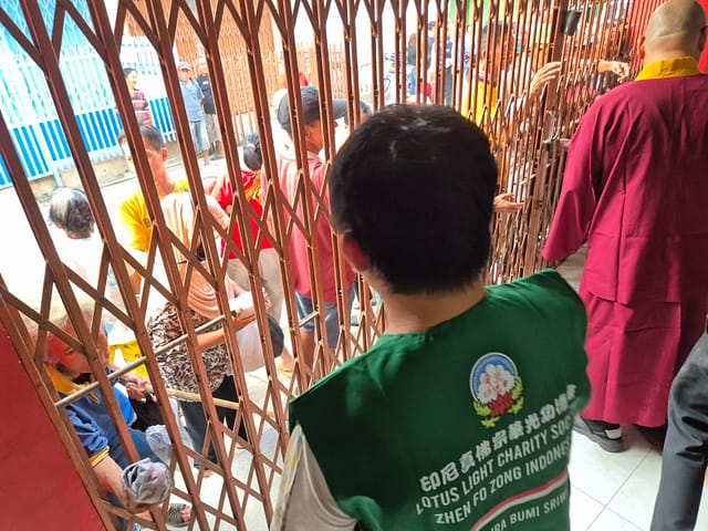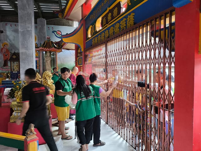 Hari ketiga, Rabu 26 Maret 2025 pukul 5 sore WIB, Vajra Acarya Lian Yuan beserta relawan Lotus Light Charity Society Vihara Vajra Bhumi Sriwijaya 聖輪雷藏寺 kembali berkumpul di depan Vihara untuk membagikan lagi 150 nasi bungkus kepada warga sekitar vihara.