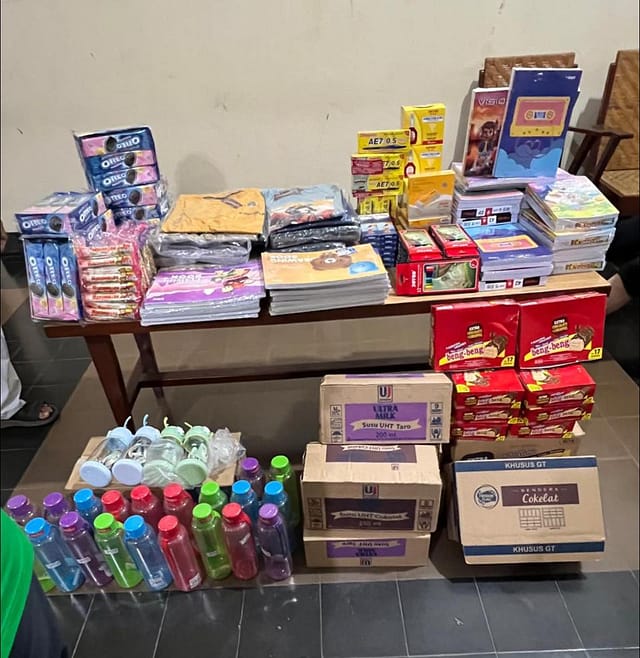 - Alat Tulis (Buku tulis, Buku gambar, Pensil, Pulpen, Penghapus, Pensil Warna, Stipo) @5 lusin