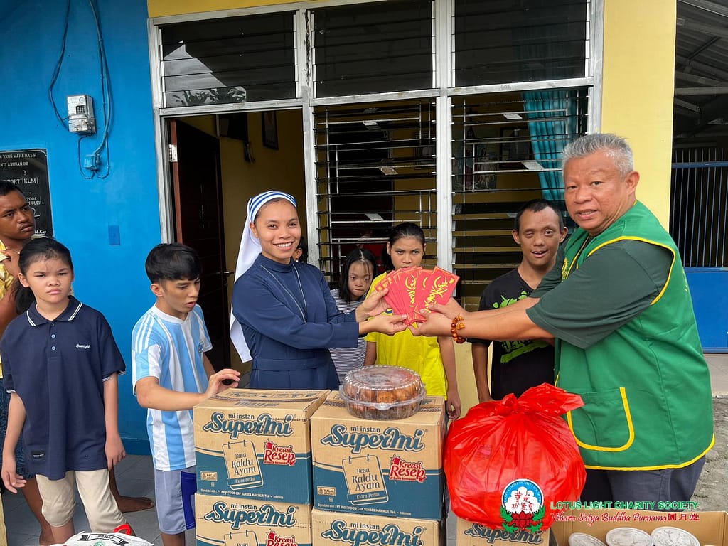 Minggu, 15 Juni 2025 Lotus Light Charity Society Satya Buddha Purnama 圆月堂 Medan berbagi kasih dengan anak-anak panti asuhan Bakti Luhur, kelurahan Martubung, Medan, Sumatera utara. Panti asuhan ini merawat anak-anak cacat dengan keterbelakangan (downsindrom), Mahaguru Liansheng senantiasa mengajarkan pengembangan catur brahma vihara tidak membedakan tinggi rendah, kuat lemah, karna semuanya memiliki Buddhata, semua adalah Buddha.