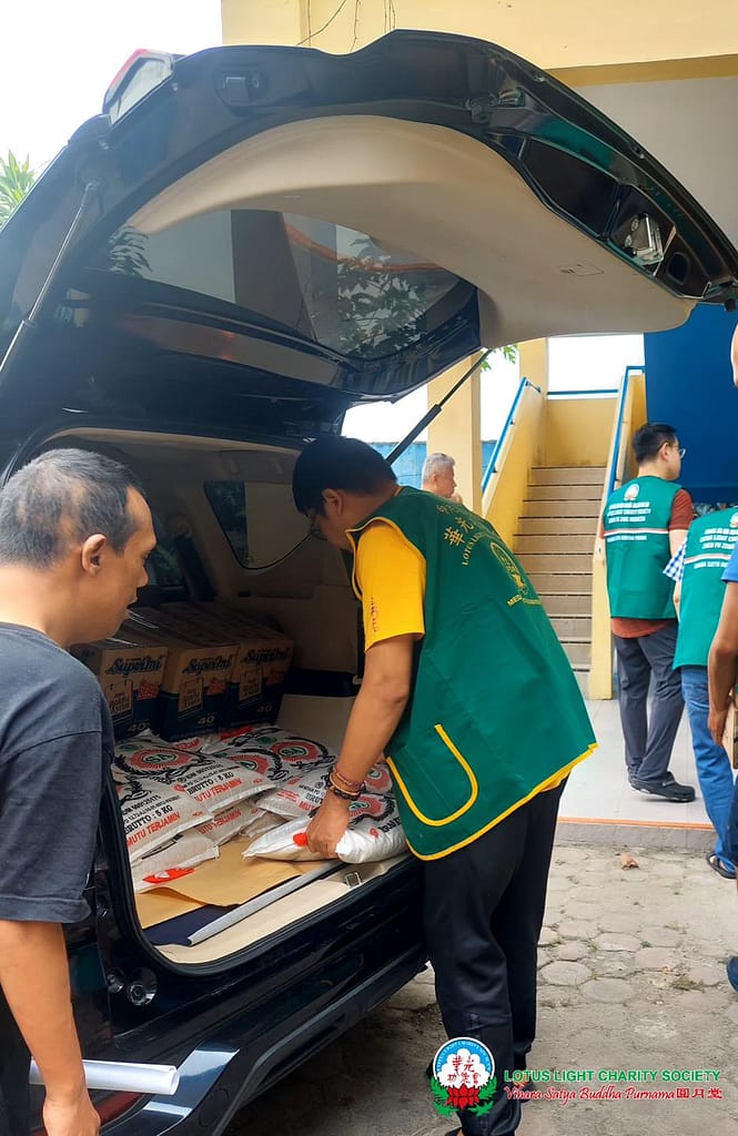 Biksu Shi Lian Ji 釋蓮居法師 dan para relawan LLCS Satya Buddha Purnama membawakan sarapan pagi penuh kebahagian berupa bubur kacang hijau 40 mangkok, 40 telur obat dan 40 biji roti. Serta bantuan untuk keseharian berupa bahan pokok yakni 100kg beras putih, 400bungkus mie siap saji, 24 liter minyak goreng, 48 bungkus biskuit kering.