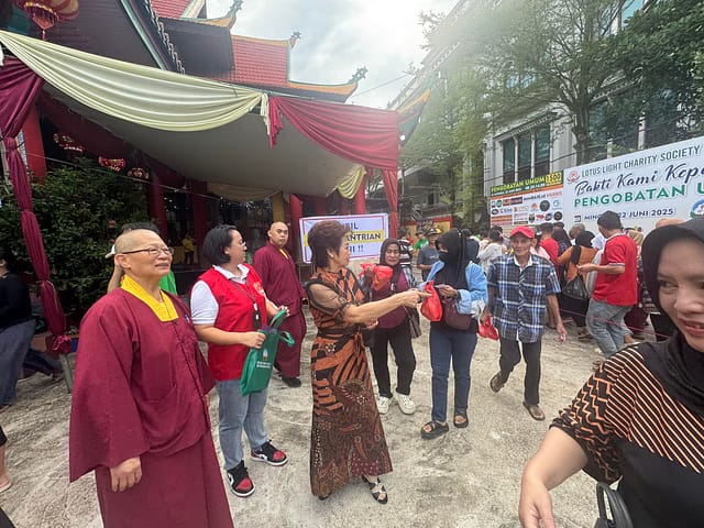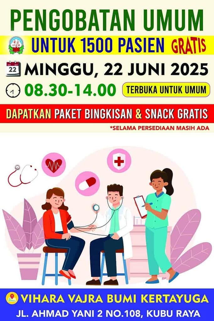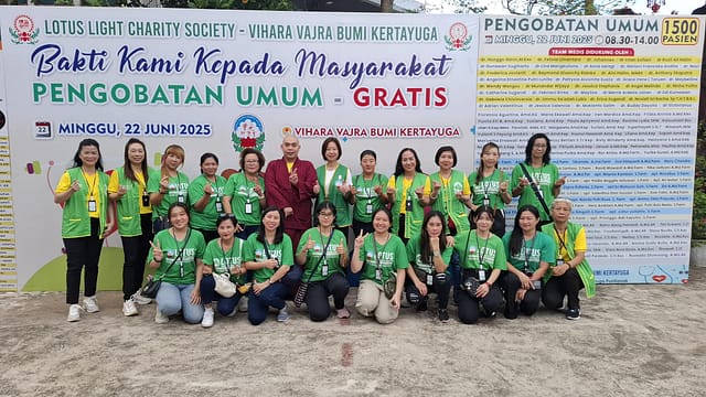 Pada tanggal 22 Juni 2025, Kota Pontianak, Provinsi Kalimantan Barat, Indonesia, dipenuhi suasana penuh kasih dan syukur. Lotus Light Charity Society Vihara Vajra Bumi Kertayuga kembali menyelenggarakan Bakti Sosial Pengobatan Gratis Tahunan ke-3, yang dilangsungkan dengan khidmat di Vihara Vajra Bumi Kertayuga Pontianak. Kegiatan penuh makna ini dipersembahkan khusus untuk merayakan hari suci kelahiran Maha Guru Lian Sheng, sebagai bentuk penghormatan dan rasa syukur mendalam. Semangat welas asih dari Maha Guru diwujudkan dalam tindakan nyata, membawa kehangatan bagi mereka yang membutuhkan uluran tangan.