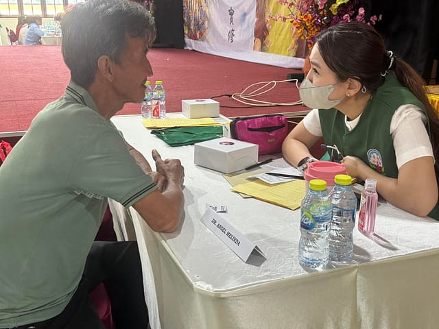 此次義診更特別邀請了128位來自各地的醫療人員,包括34位醫生和94位護士,他們熱忱支援,為逾1500位民眾提供免費的健康檢查、醫療諮詢與衛生教育等全方位服務。在親切接待與妥善照顧中,每位前來就診的鄉親,不僅獲得醫療照護,還領取了一份5公斤白米,象徵健康與溫飽的雙重守護,讓慈悲不僅落實於身心,也延伸至生活的基本所需,讓許多民眾紛紛表達感動與感恩。