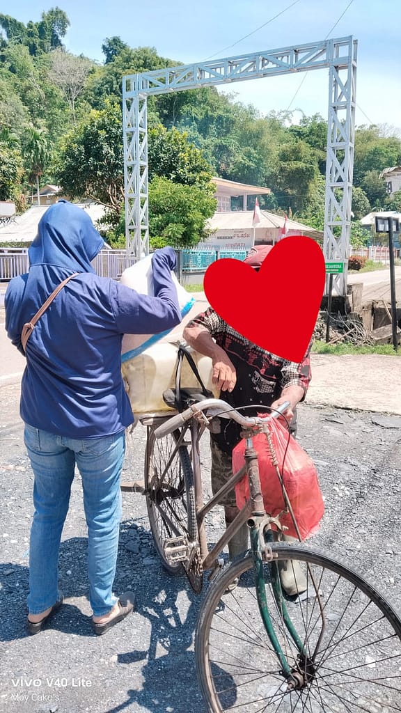 Di rumah lain, seorang bapak tua datang dengan sepeda yang catnya sudah pudar, bannya tipis, dan stangnya berkarat. Namun ketika beras dan kantong merah itu diletakkan di boncengannya, ia tersenyum, senyum lembut yang membuat hati terasa hangat.