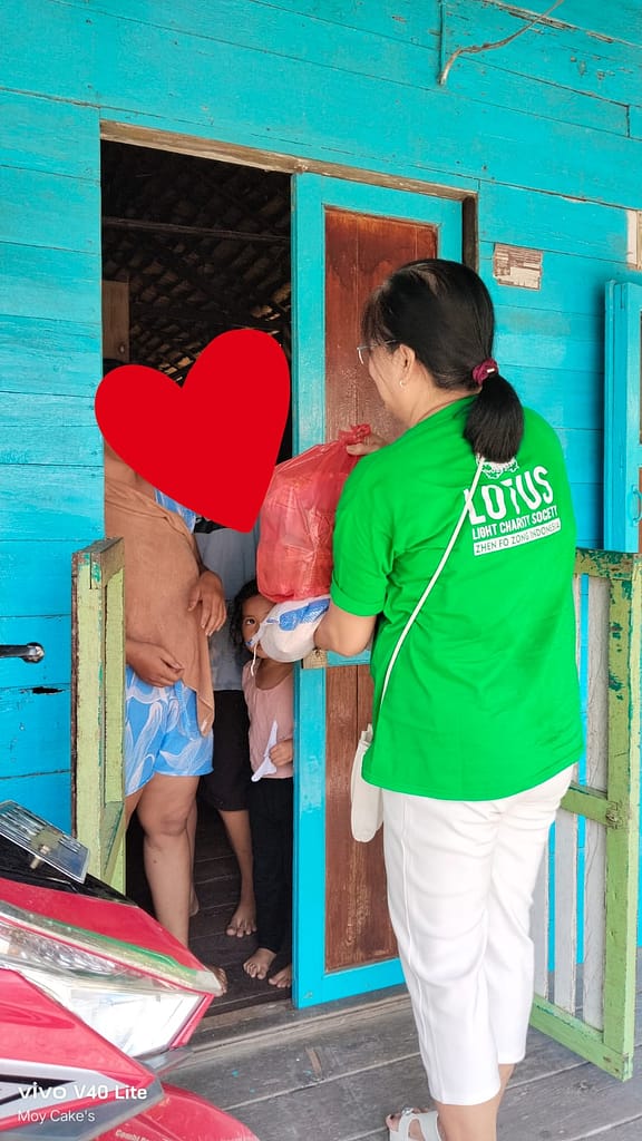 Team Lotus Light Charity Society – Vihara Yen Fei Pemangkat 圓輝堂 melangkah melewati gang-gang kayu yang sudah berumur, menyapa setiap orang dengan senyum. Setiap langkah membawa hati kami lebih dekat pada mudita, melihat kebahagiaan lahir dari kepedulian yang tulus.
