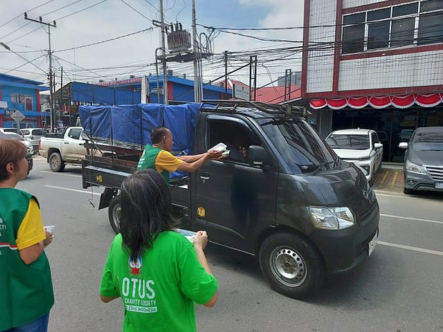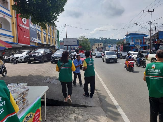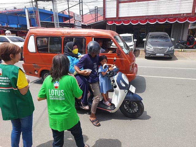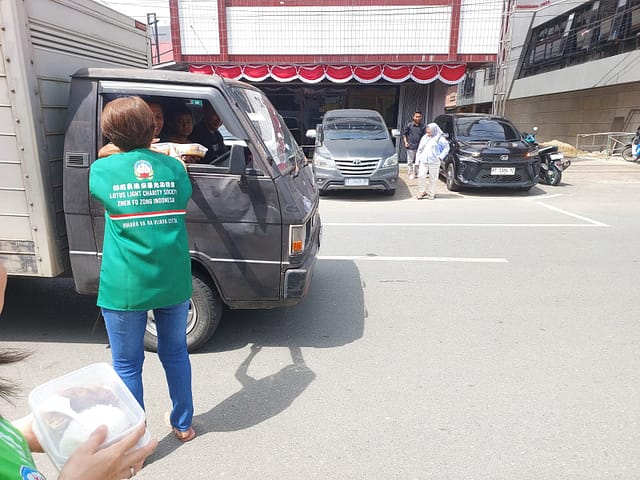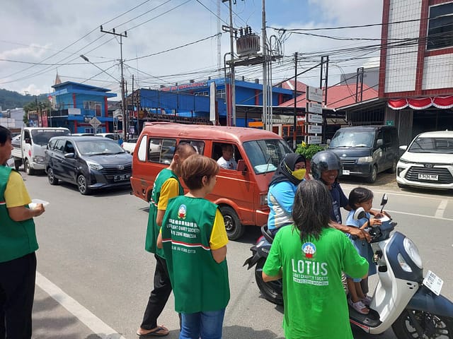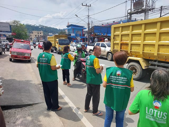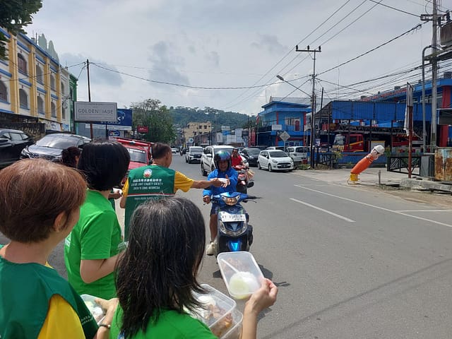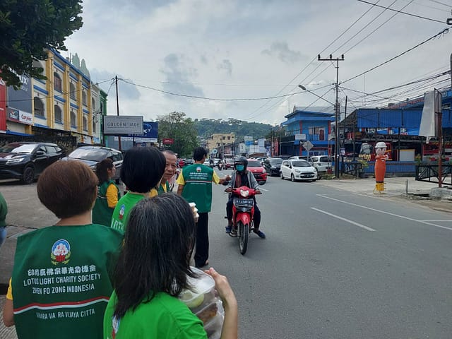 dan dibagikan kepada para pejuang nafkah yang melintas di depan vihara.