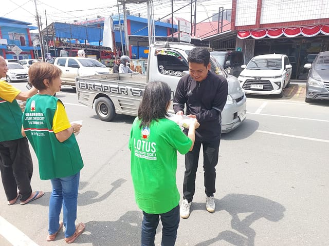 LLCS Vihara Vajra Vijaya Citta – Samarinda bagikan 200 paket Nasi Lotus untuk masyarakat sekitar