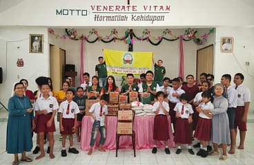 Ditujukan kepada 7 panti asuhan dan 1 panti tuna netra, yaitu: (1) Panti Tuna Netra Karya Murni (2) Panti Asuhan Haga Generasi Indonesia (3) Panti Asuhan Kasih Deserius Indonesia (4) Panti Asuhan Hati Gloria (5) Panti Asuhan Nusa Indah Sejati (6) Panti Asuhan Anak Berkarya (7) Panti Asuhan Kasih Pasca Anjeli Indonesia. Bantuan berupa beras, minyak, kacang hijau, sardencis, susu kental manis, gula, dan telur disalurkan sesuai kebutuhan.