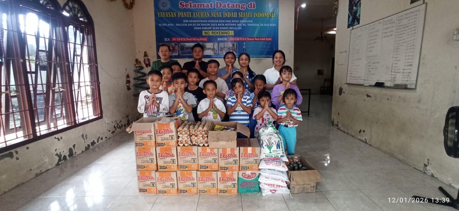 Ditujukan kepada 7 panti asuhan dan 1 panti tuna netra, yaitu: (1) Panti Tuna Netra Karya Murni (2) Panti Asuhan Haga Generasi Indonesia (3) Panti Asuhan Kasih Deserius Indonesia (4) Panti Asuhan Hati Gloria (5) Panti Asuhan Nusa Indah Sejati (6) Panti Asuhan Anak Berkarya (7) Panti Asuhan Kasih Pasca Anjeli Indonesia. Bantuan berupa beras, minyak, kacang hijau, sardencis, susu kental manis, gula, dan telur disalurkan sesuai kebutuhan.