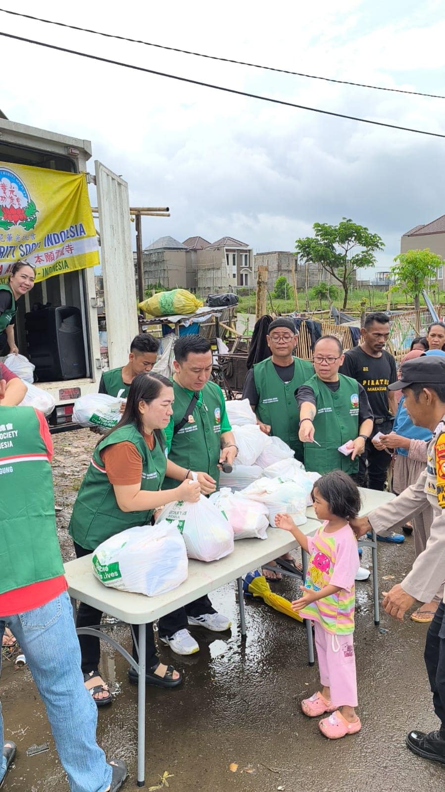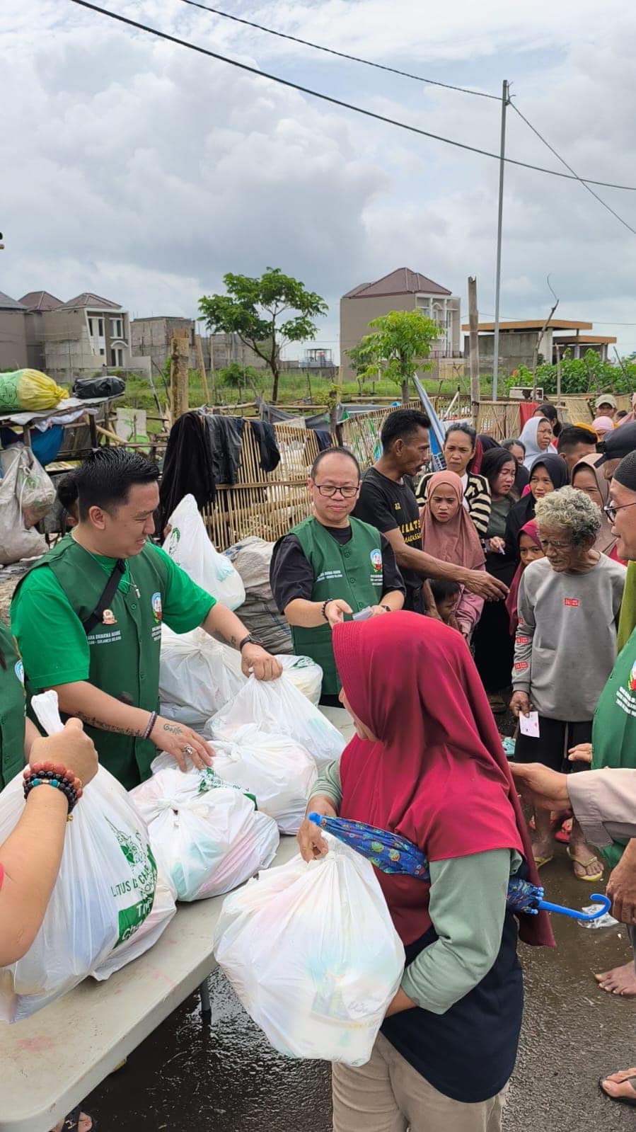 Dengan semangat pengabdian, para relawan membagi pendistribusian menjadi tiga sesi agar bantuan tersampaikan dengan tepat sasaran dan personal: