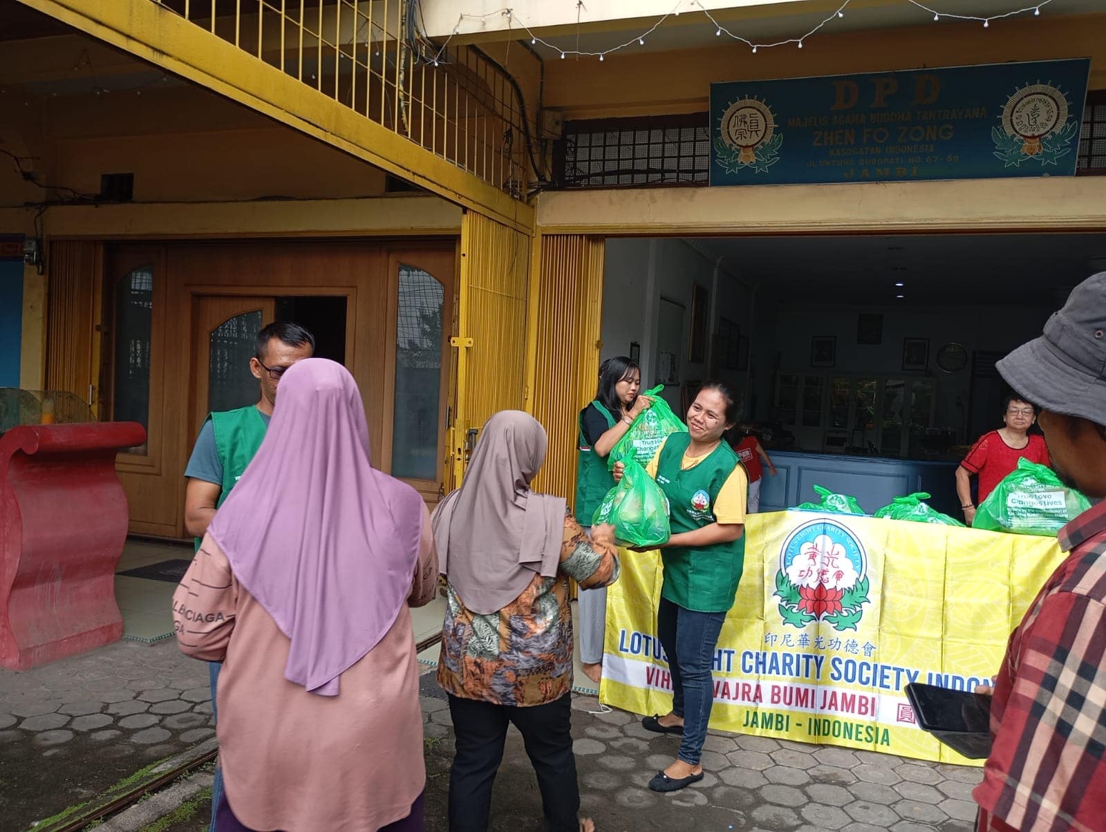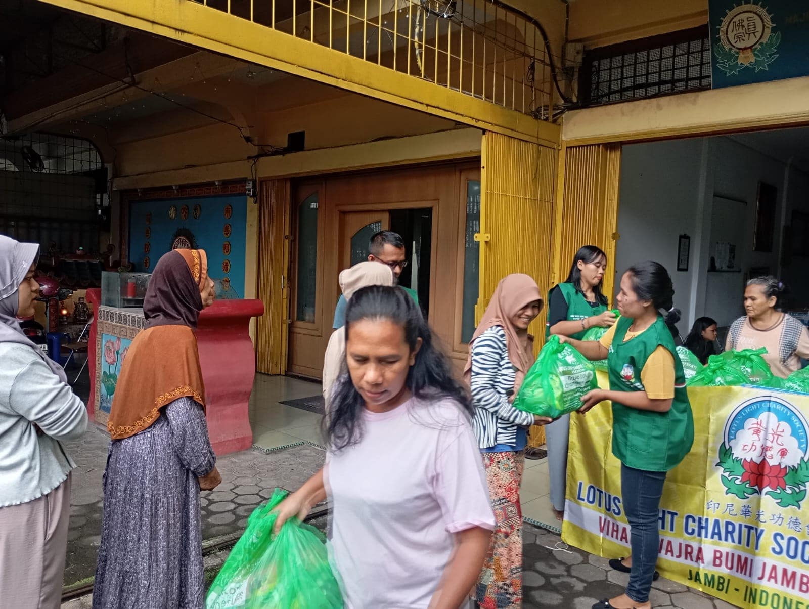 Melibatkan Umat hingga Siswa SMB, Lotus Light Charity Society Cabang Vihara Vajra Bumi Jambi Salurkan 88 Paket Sembako bagi Warga di Sekitar Lingkungan Vihara