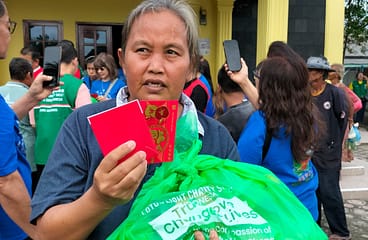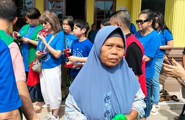 Sebagai ungkapan rasa terima kasih, para warga penerima bantuan menyalami para sukarelawan yang terlibat dalam kegiatan bakti sosial ini. Bahkan, beberapa warga tampak menitikkan air mata haru atas bantuan yang mereka terima.