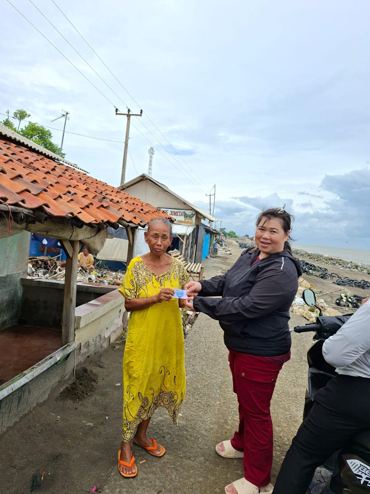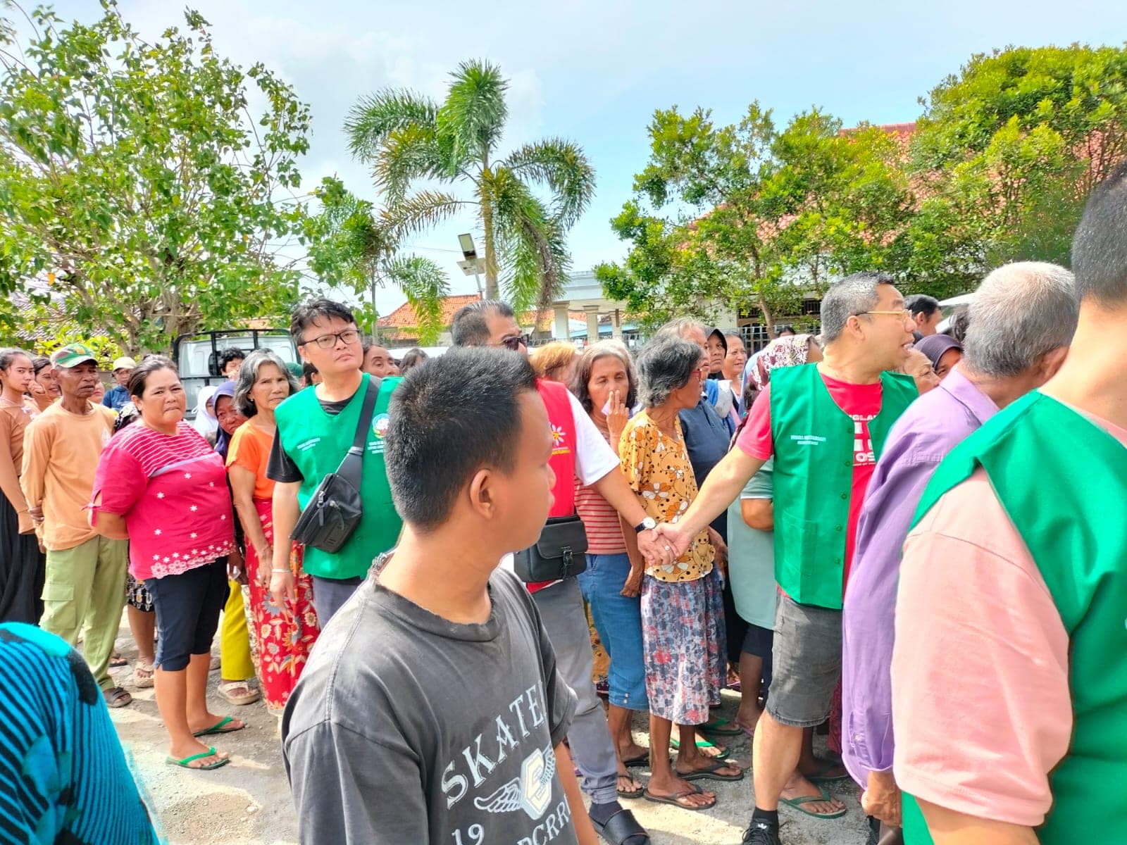 Sebagai ungkapan rasa terima kasih, para warga penerima bantuan menyalami para sukarelawan yang terlibat dalam kegiatan bakti sosial ini. Bahkan, beberapa warga tampak menitikkan air mata haru atas bantuan yang mereka terima.