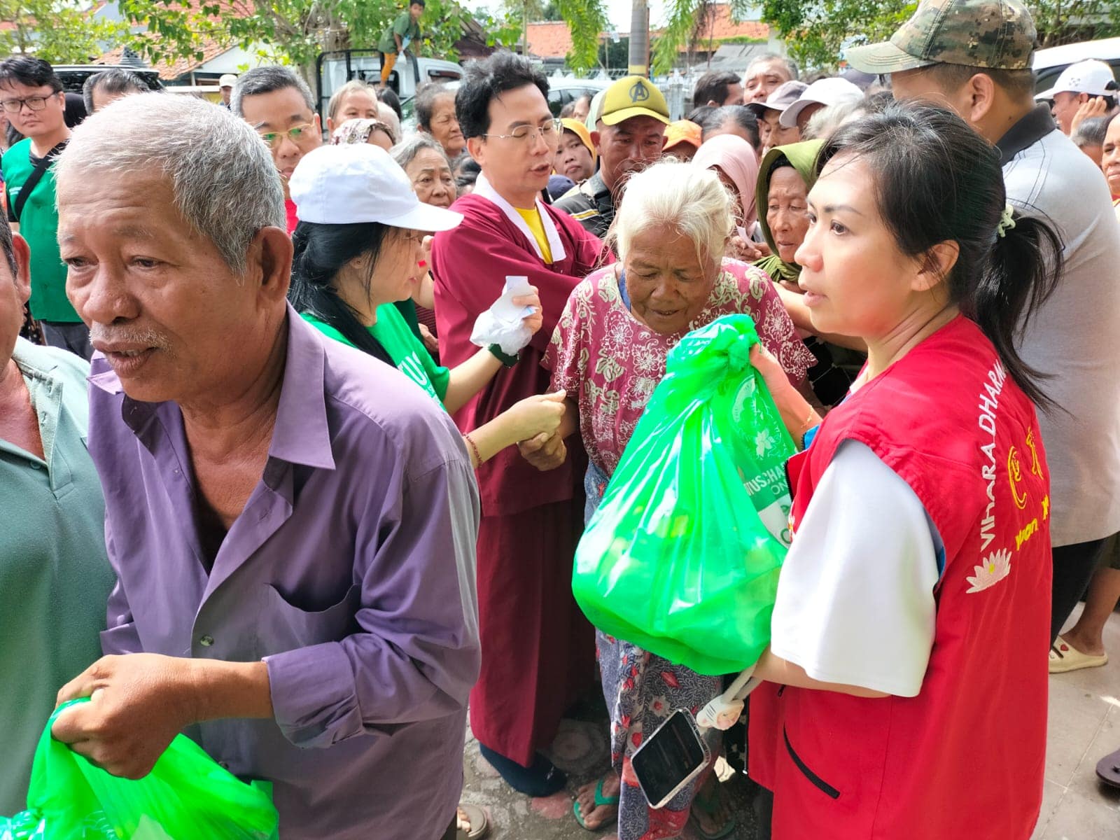 Suasana haru menyelimuti kegiatan tersebut. Para pengurus vihara dan sukarelawan mengaku terenyuh melihat banyaknya ibu-ibu lanjut usia yang tampak lemah secara fisik, namun tetap tersenyum tulus dan sabar mengantre untuk menerima bantuan. Hal serupa juga terlihat dari para bapak-bapak lanjut usia yang hadir dengan penuh semangat.