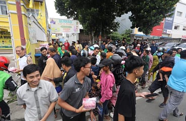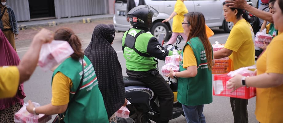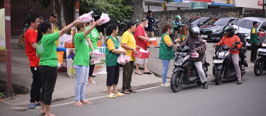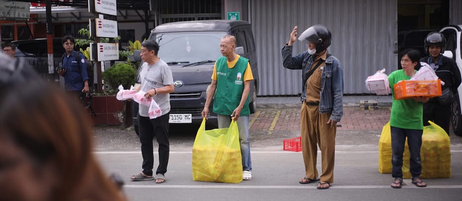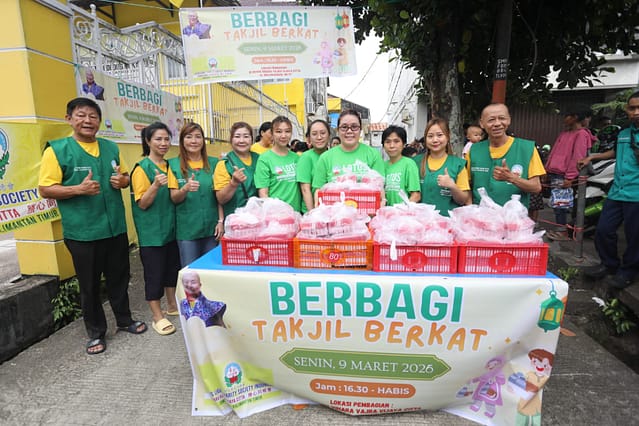Memasuki pukul 16.00, suasana di depan vihara mulai dipenuhi antusiasme masyarakat. Warga sekitar, petugas pemadam kebakaran, petugas keamanan, para pengemudi ojek online, hingga pengguna jalan yang melintas tampak tertib membentuk antrean untuk menerima takjil. Momen ini menghadirkan suasana hangat yang mempertemukan berbagai lapisan masyarakat dalam satu kebersamaan yang sederhana namun bermakna.