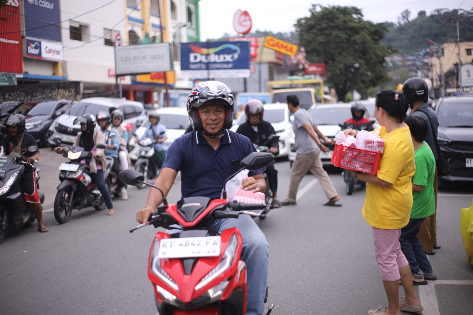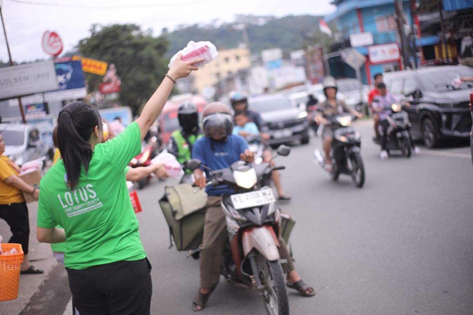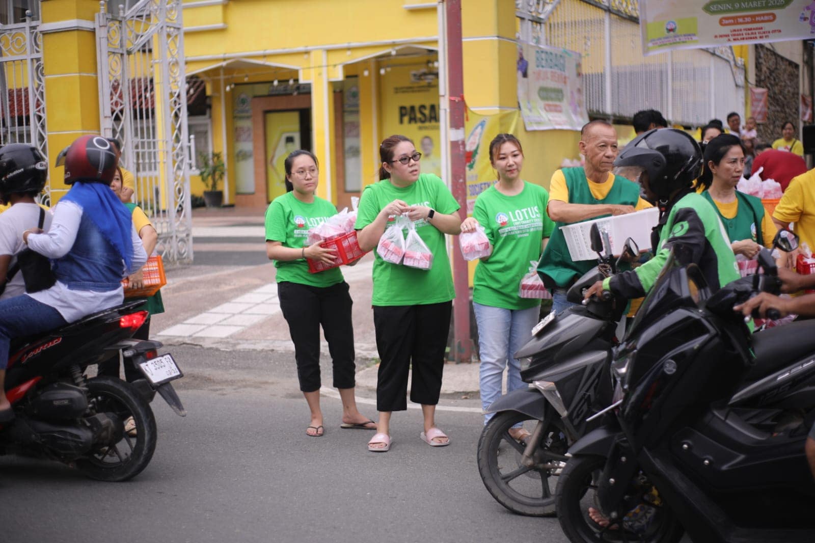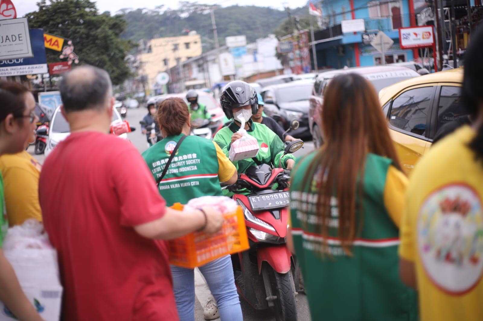 Memasuki pukul 16.00, suasana di depan vihara mulai dipenuhi antusiasme masyarakat. Warga sekitar, petugas pemadam kebakaran, petugas keamanan, para pengemudi ojek online, hingga pengguna jalan yang melintas tampak tertib membentuk antrean untuk menerima takjil. Momen ini menghadirkan suasana hangat yang mempertemukan berbagai lapisan masyarakat dalam satu kebersamaan yang sederhana namun bermakna.